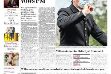 The Sunday Telegraph leads with a promise from Prime Minister Boris Johnson, who says that there are big changes coming for Britain in 2021.