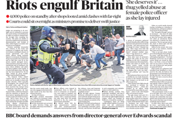 The Sunday Times reports that over a hundred protesters have been detained amid widespread riots across Britain.