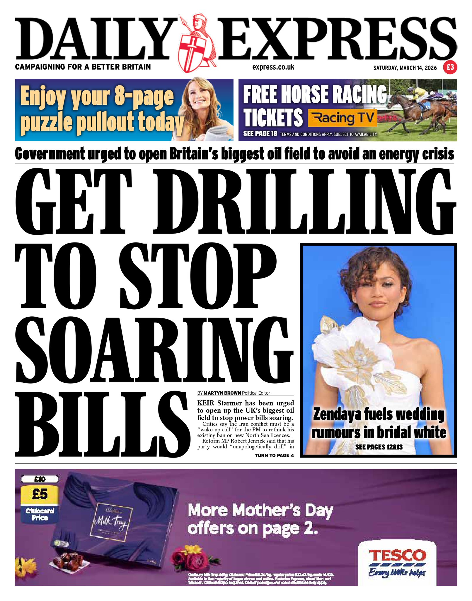Daily Express Front Page 14th of March 2026