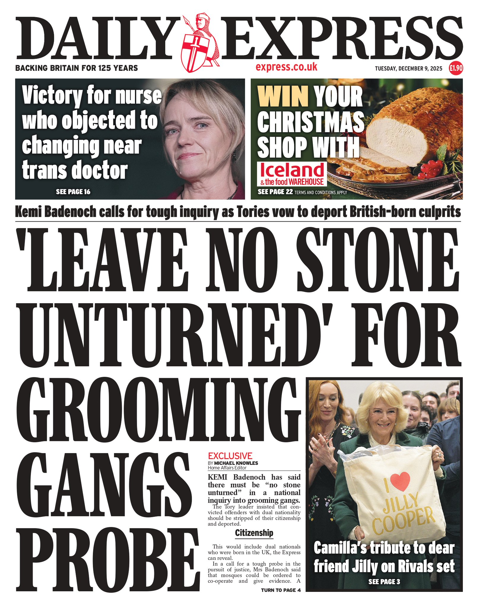 Daily Express Front Page 9th of December 2025
