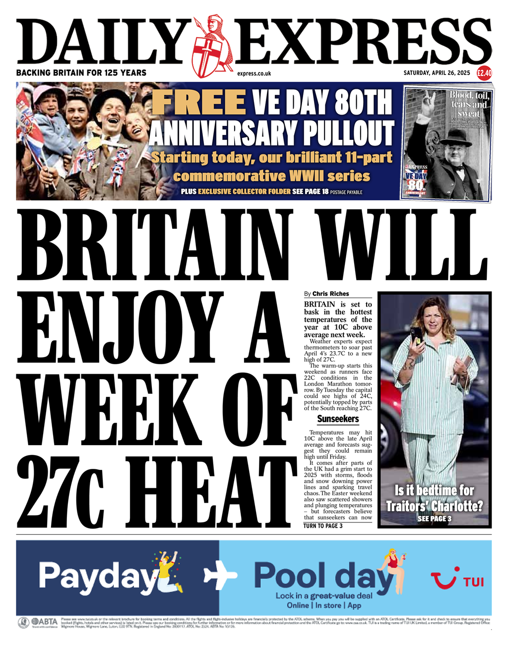 The Daily Express focuses on a three-year-old British girl being among the children who were attacked. The paper also has a picture of a woman trying to block a man from running away.