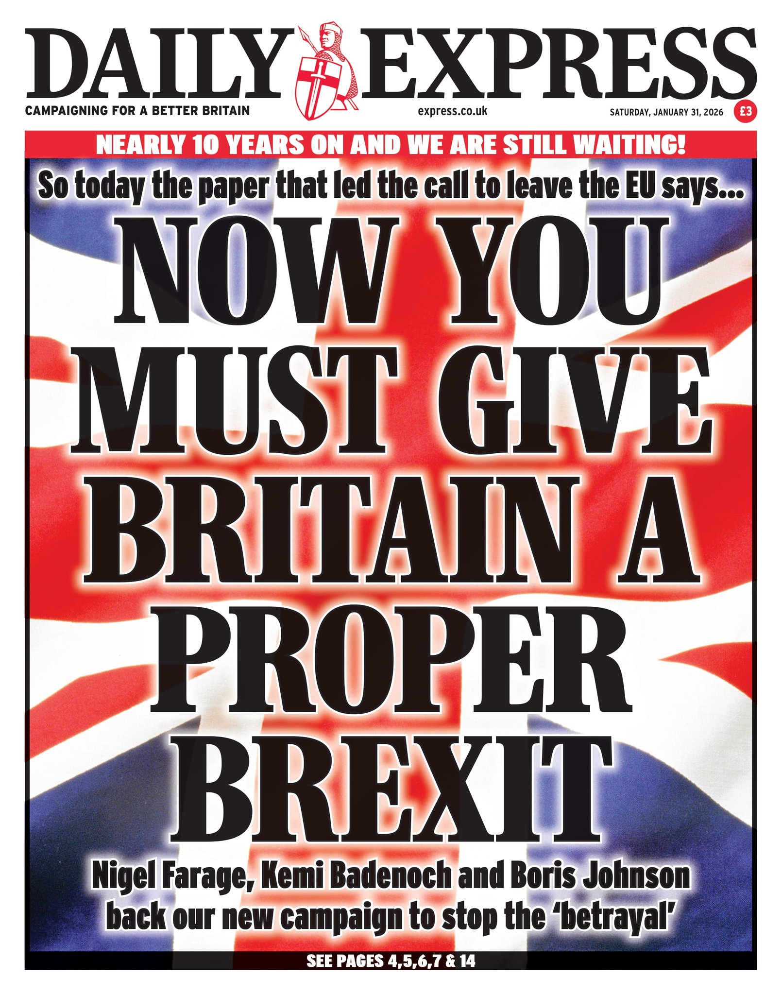 Daily Express Front Page 31st of January 2026