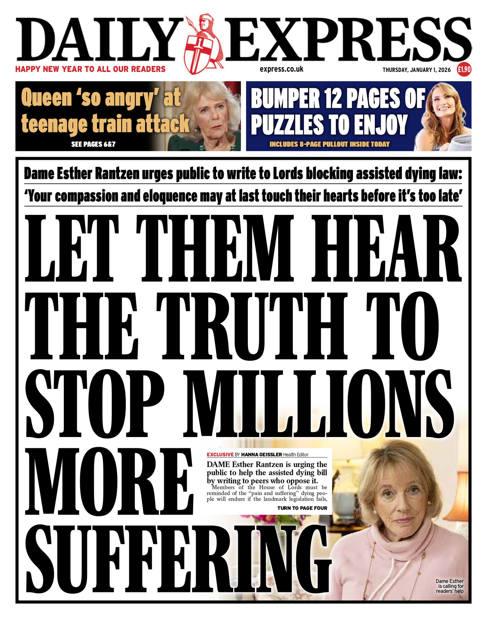 Daily Express Front Page 1st of January 2026