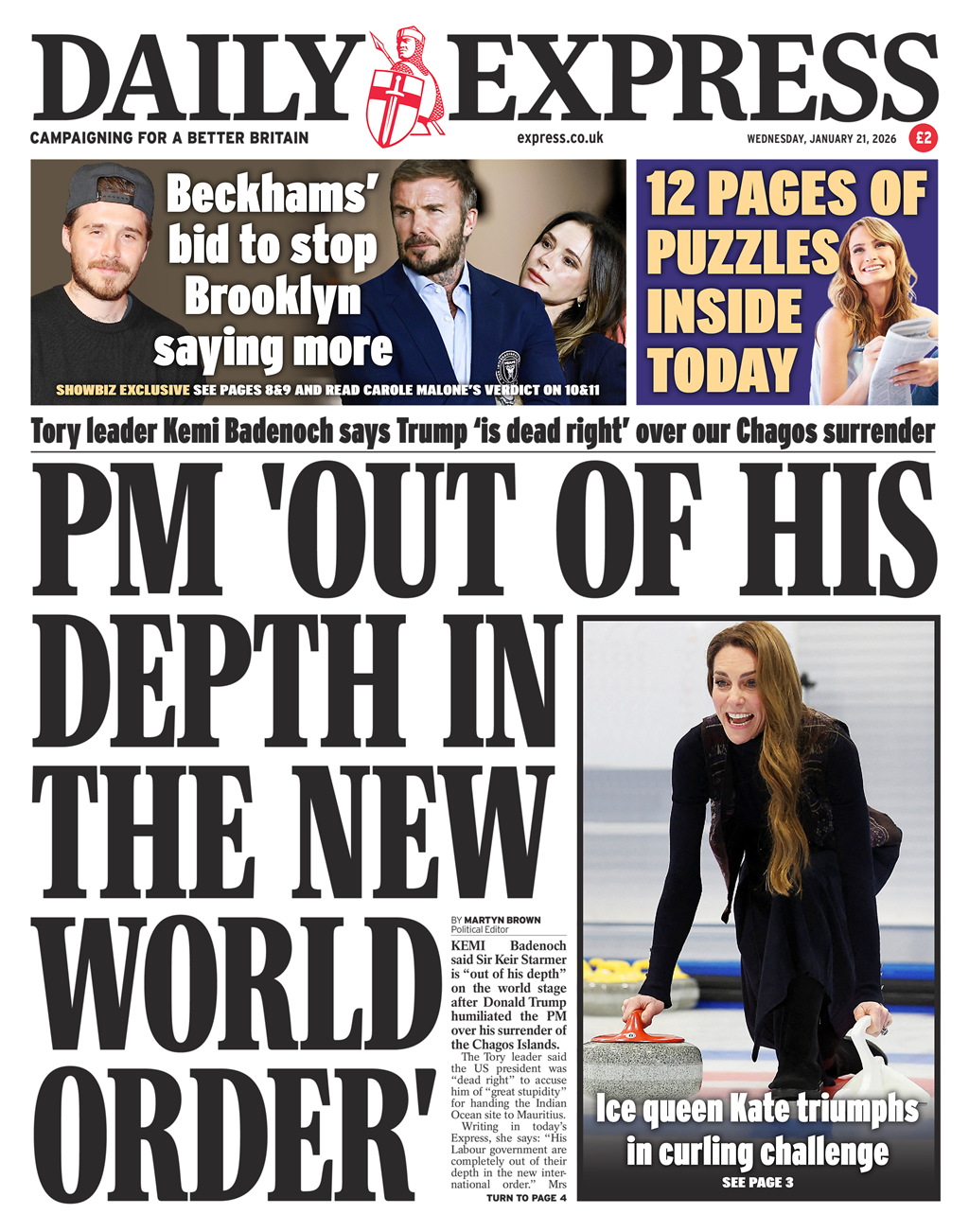 Daily Express Front Page 21st of January 2026