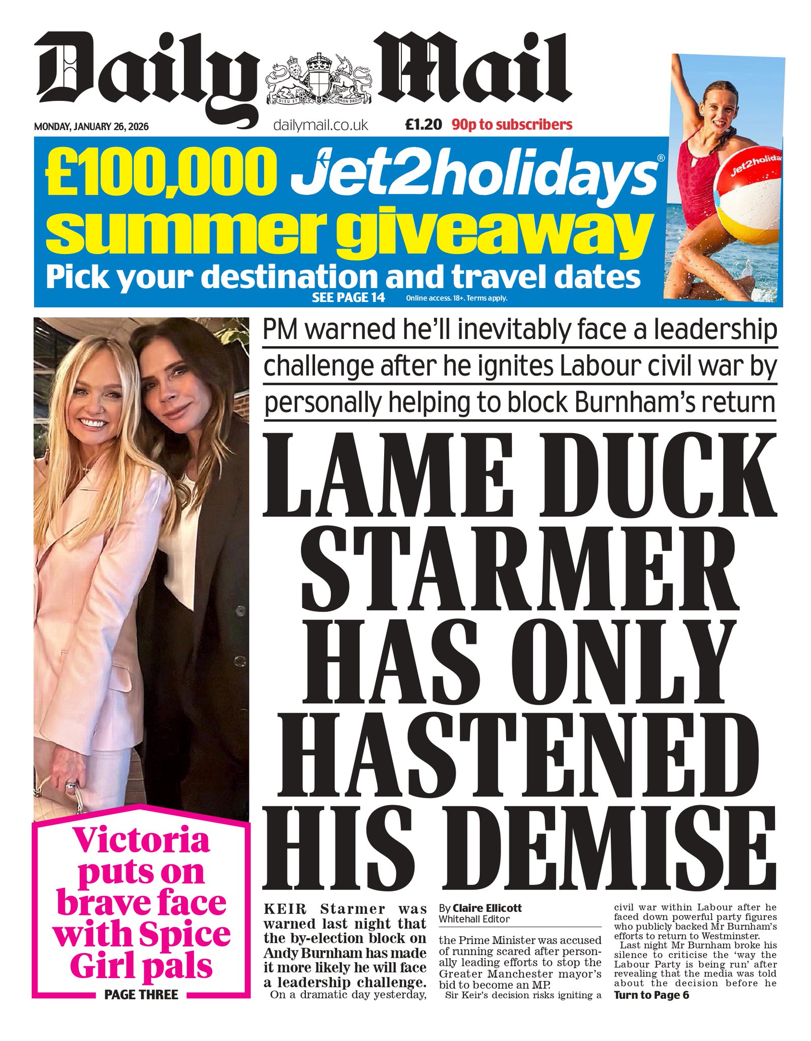 Daily Mail Front Page 26th of January 2026