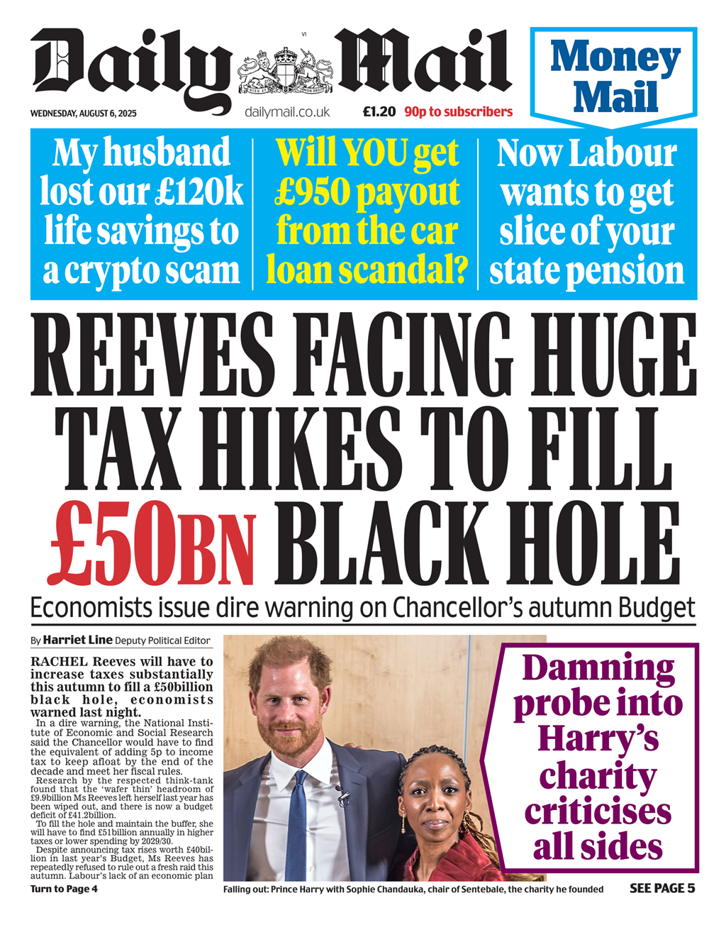 “Not a penny to compensate air chaos victims” is how the Daily Mail sums up a second day of delays and cancellations in the UK following an air traffic control glitch. Elsewhere there is an image of Ulez protesters, with a warning that they want “[London Mayor Sadiq] Khan out” after he expanded the scheme to include all of the capital’s boroughs