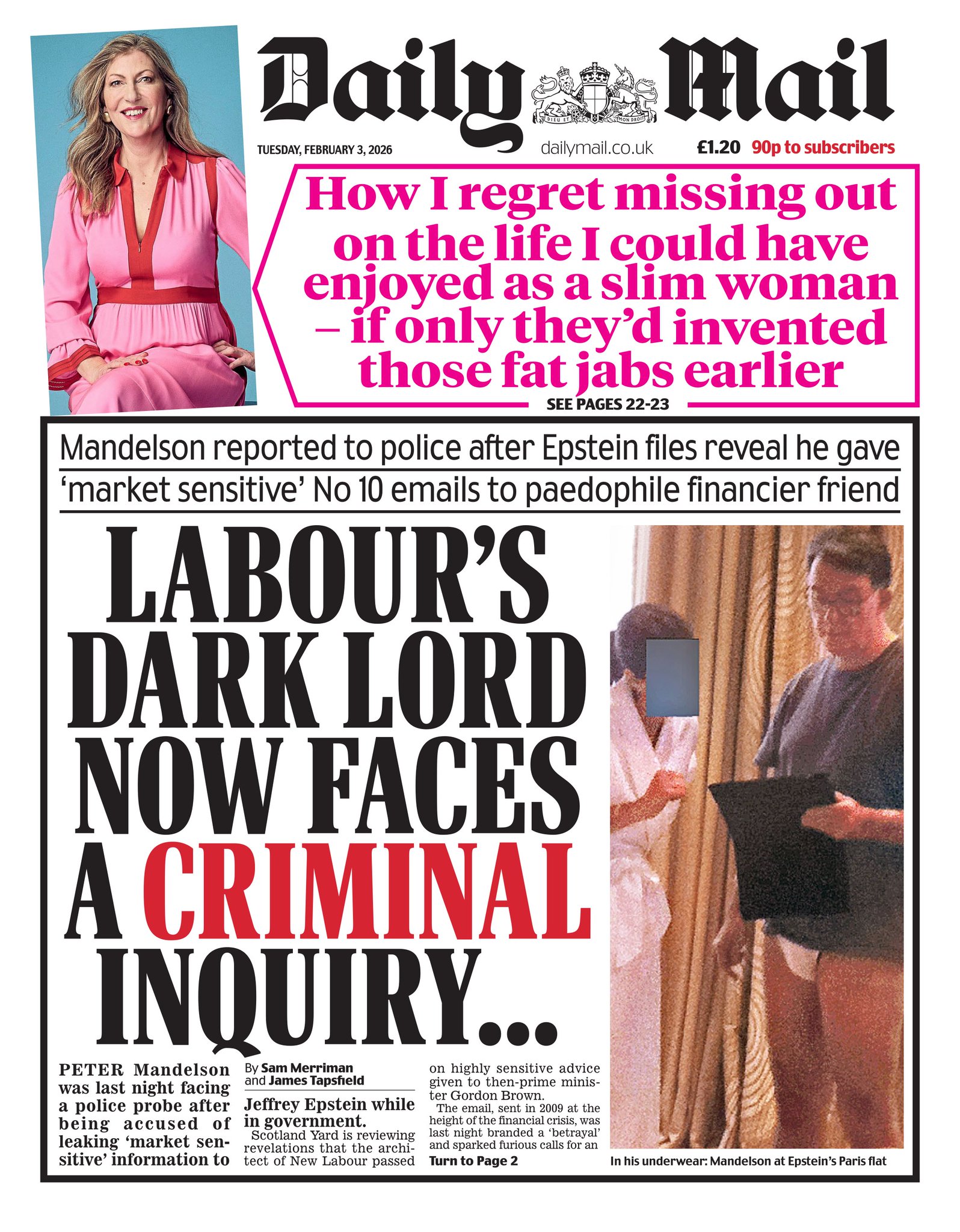 Police are assessing claims Peter Mandelson leaked market‑sensitive information while in government. Files indicate he emailed disgraced financier Jeffrey Epstein in 2009 about advice to the PM during the financial crisis. Scotland Yard is reviewing whether to open a criminal investigation.
