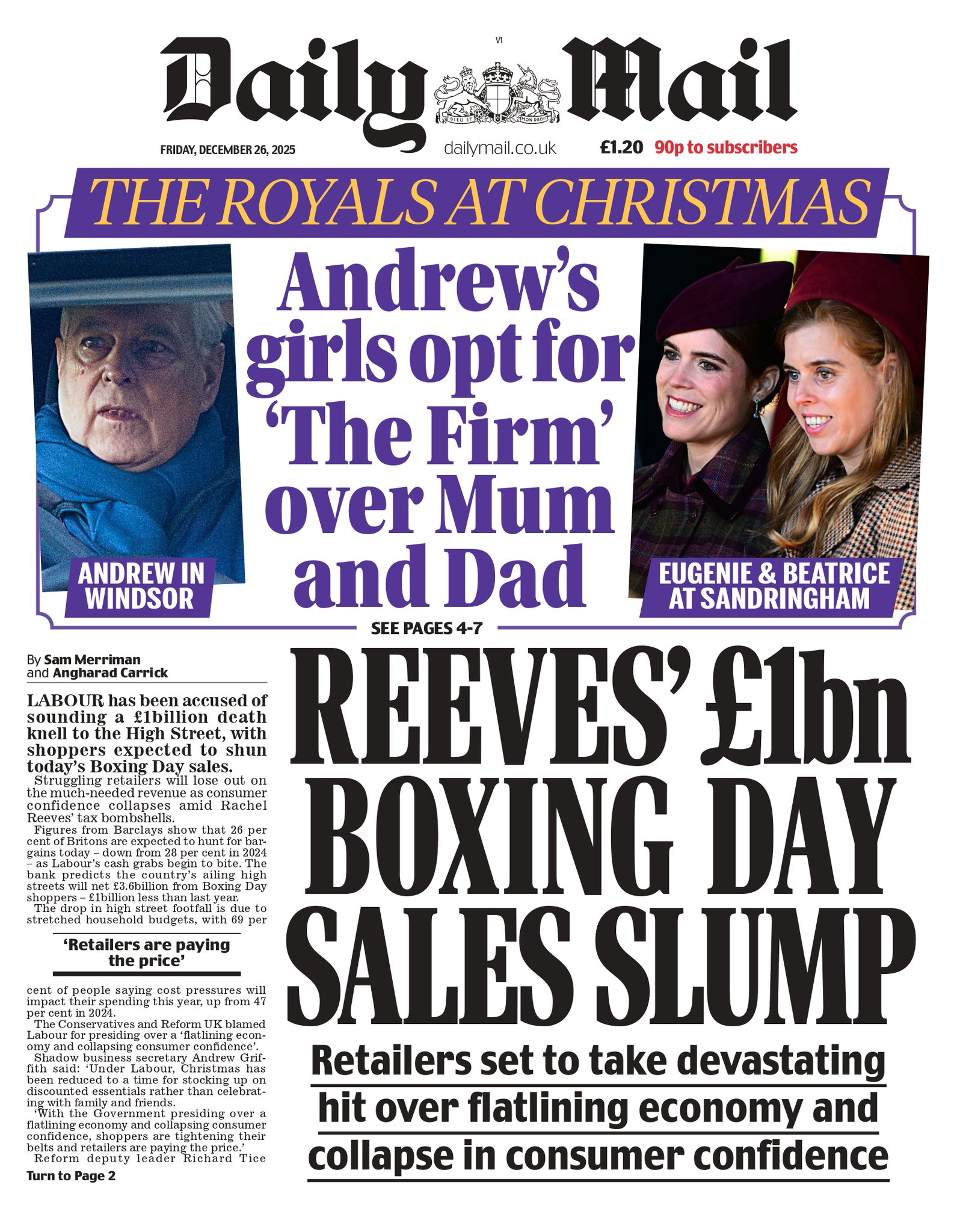 UK retailers face a predicted £1bn shortfall in Boxing Day takings as consumer confidence weakens and fewer people hunt for bargains. Barclays expects about £3.6bn to be spent, down on last year. Critics blame Labour’s tax and economic approach; others cite squeezed household budgets.