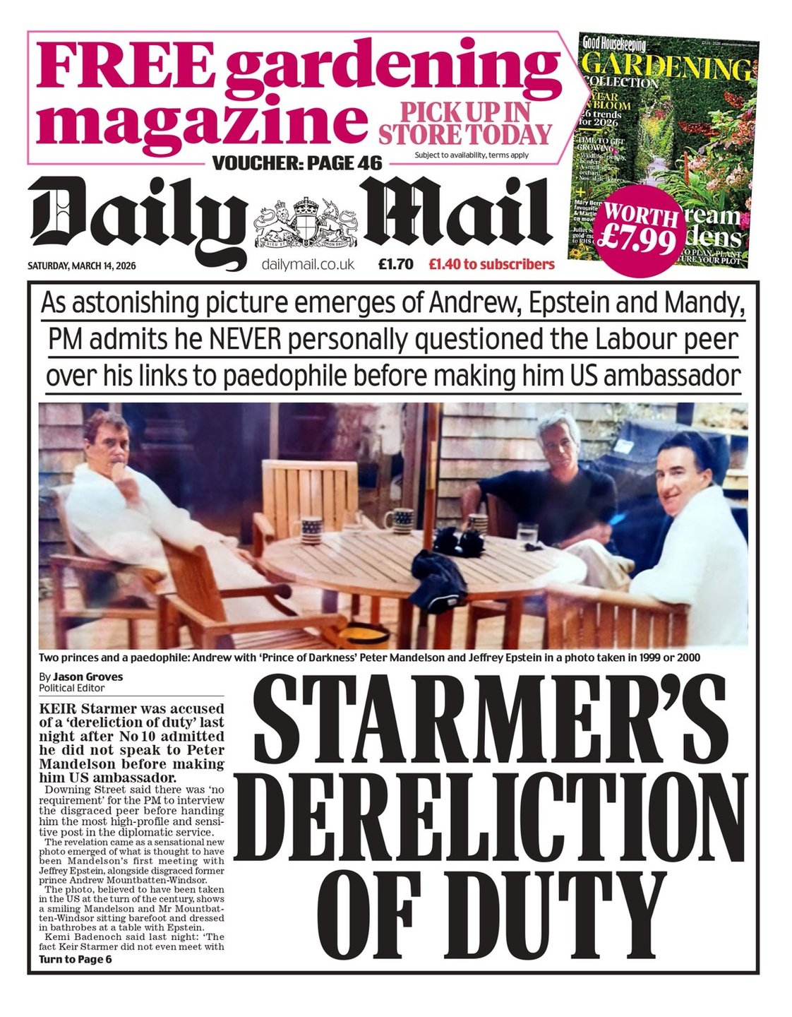 Daily Mail Front Page 14th of March 2026