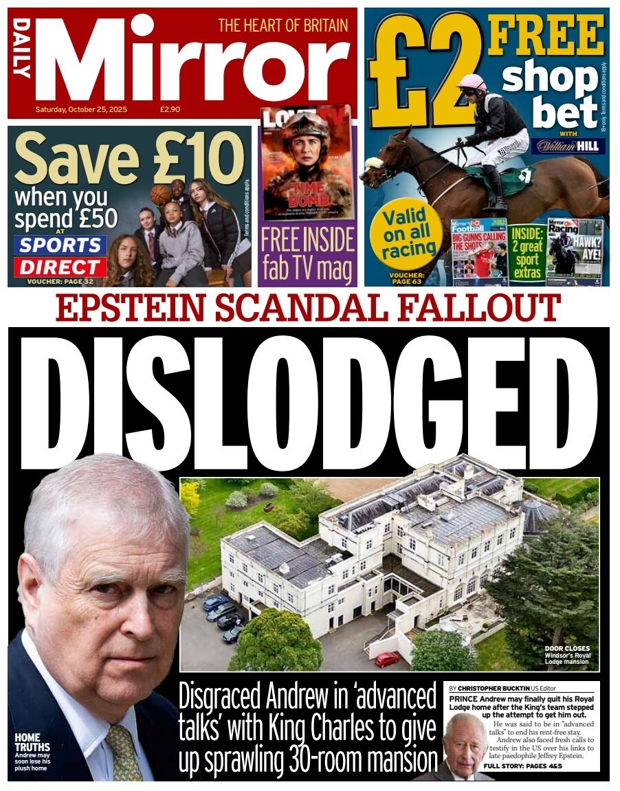 Daily Mirror Front Page 10th of November 2025