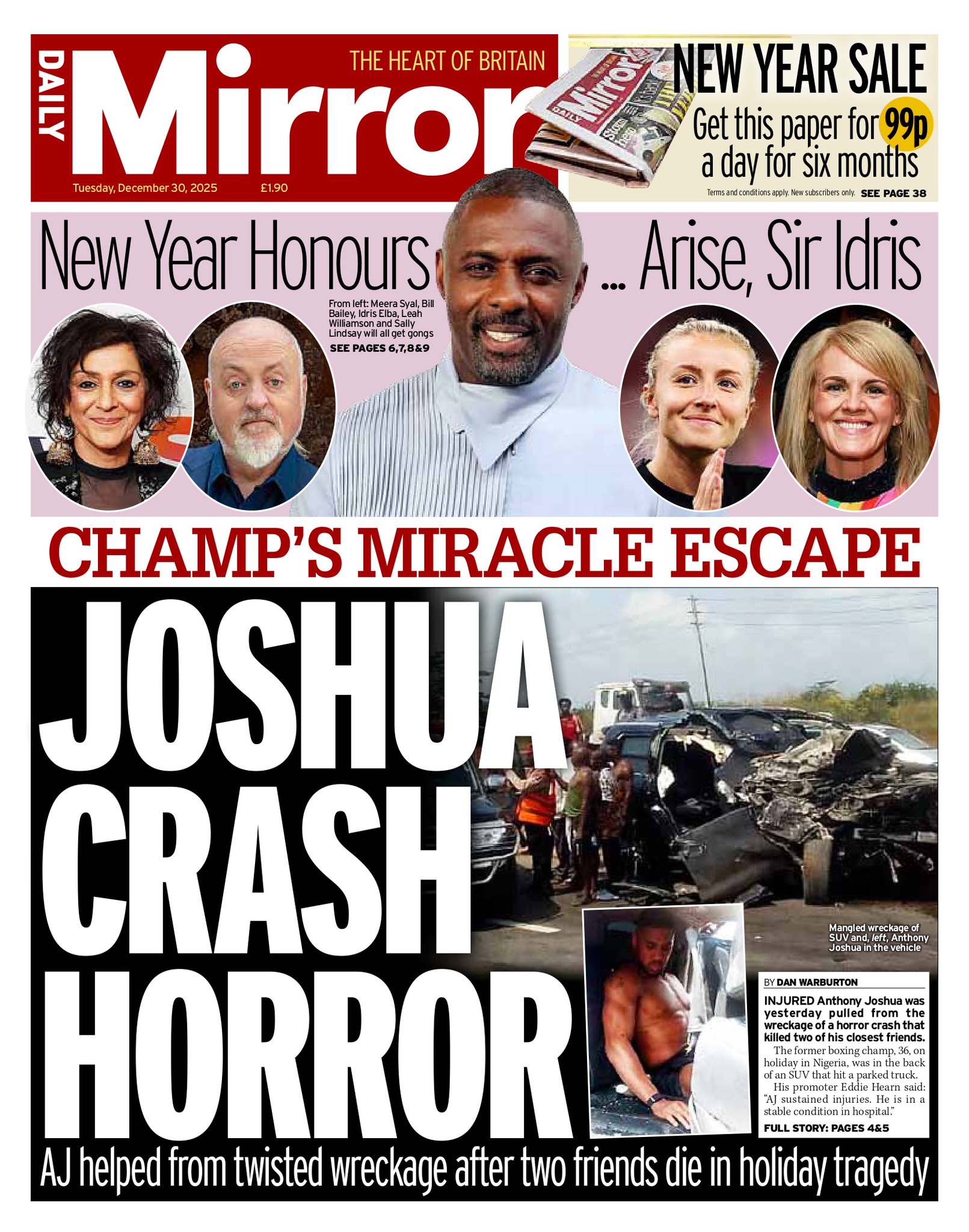 Daily Mirror Front Page 30th of December 2025