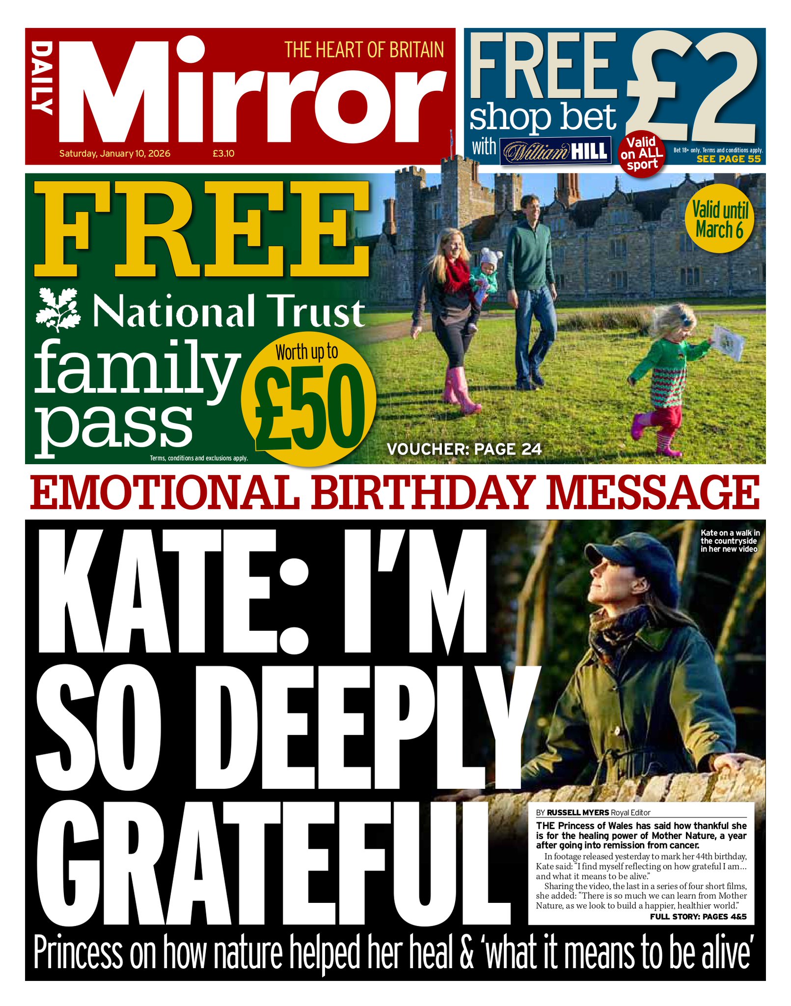 Daily Mirror Front Page 10th of January 2026