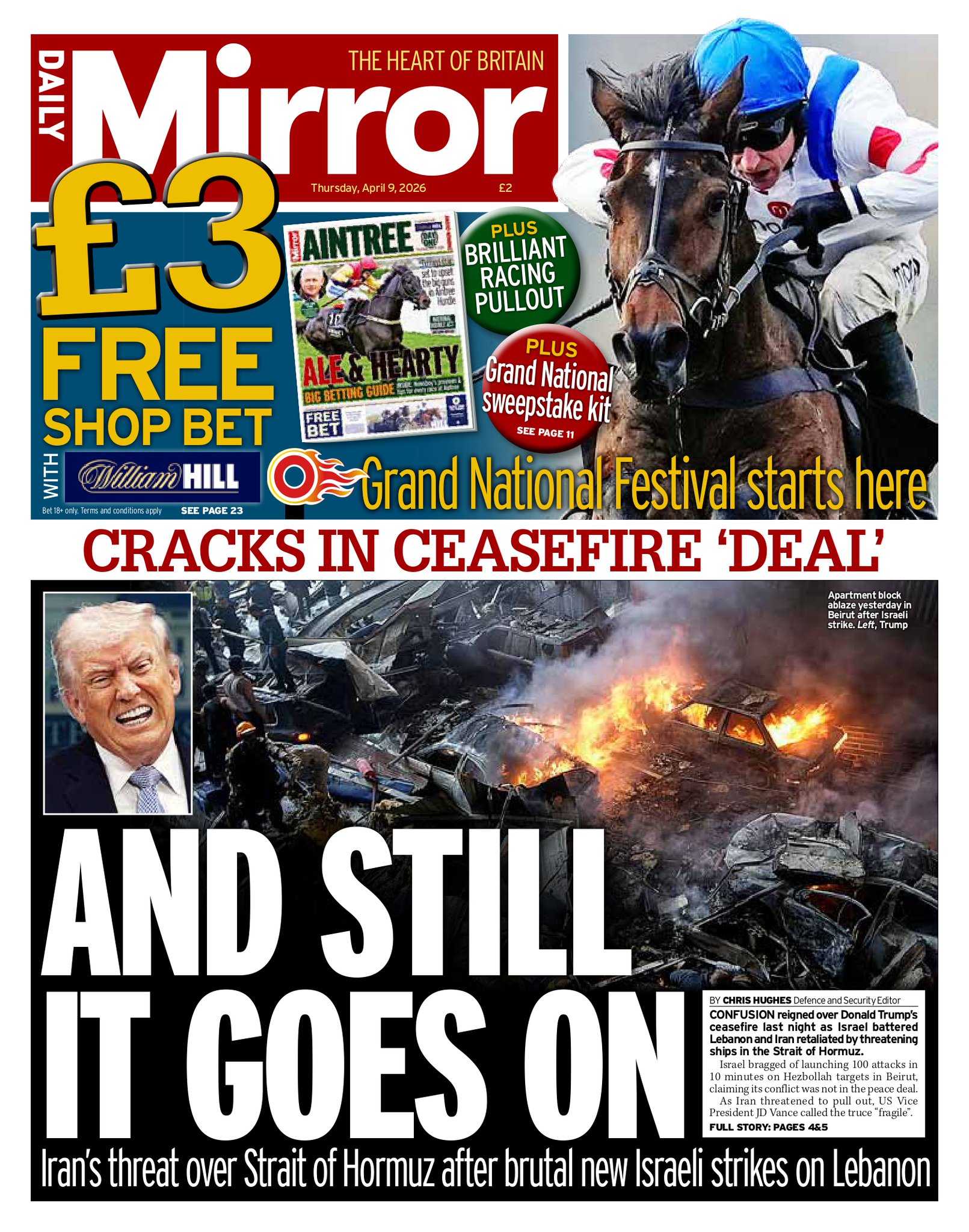 Daily Mirror Front Page 9th of April 2026