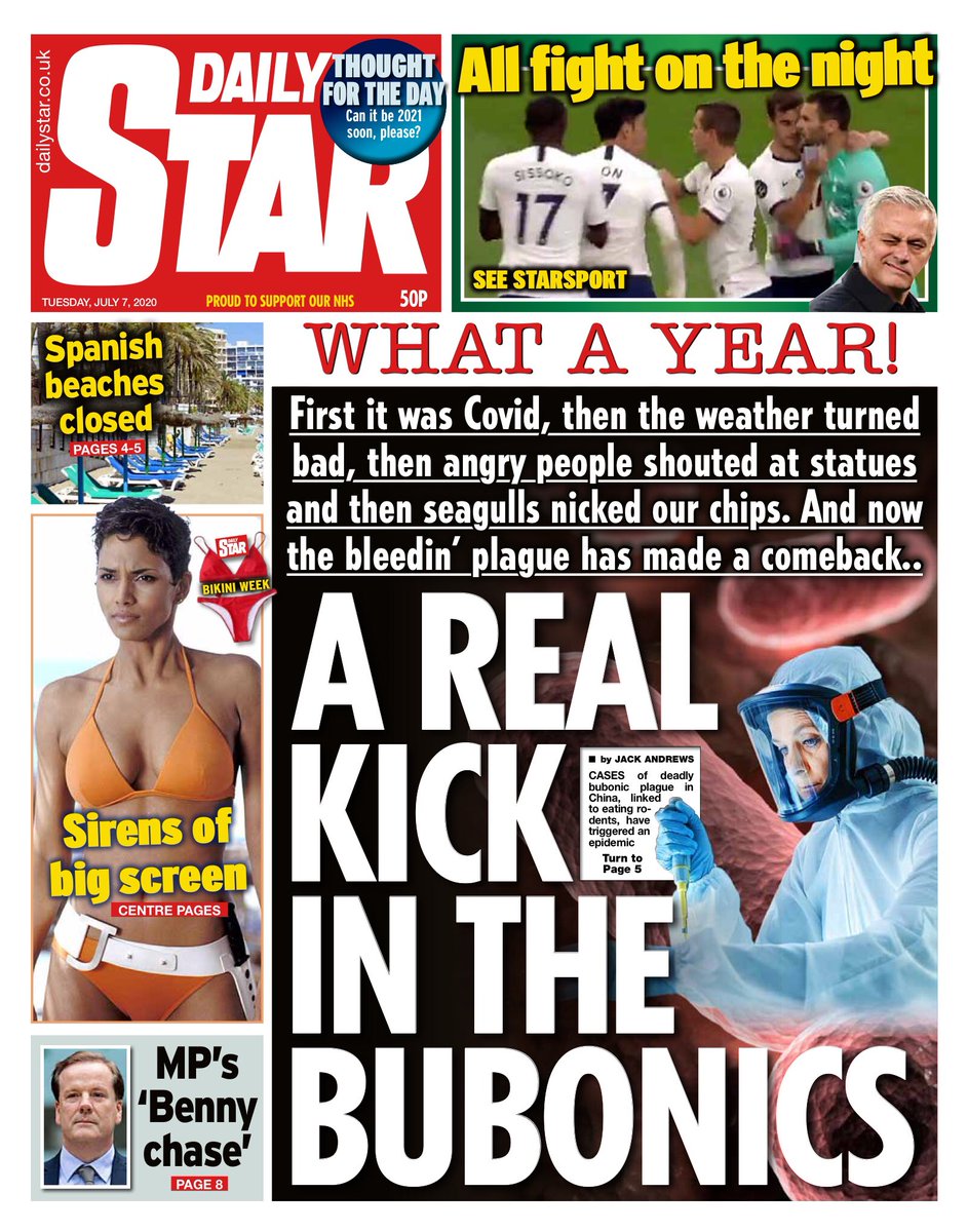 A different story from China leads the Daily Star, which reports the “plague has made a comeback” after a case of the illness that caused the Black Death was discovered in inner Mongolia. After a difficult year so far, the paper calls it “a real kick in the bubonics”.