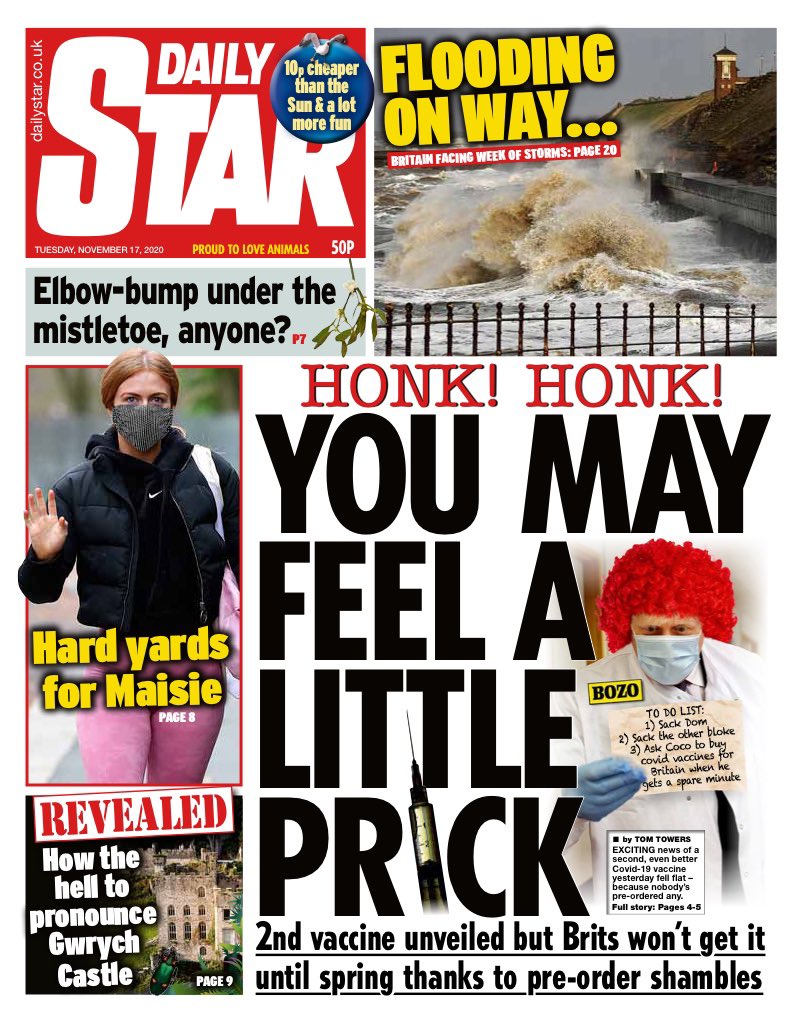 The Daily Star reports the UK will have to wait until the spring for the vaccine, because of a “pre-order shambles”.