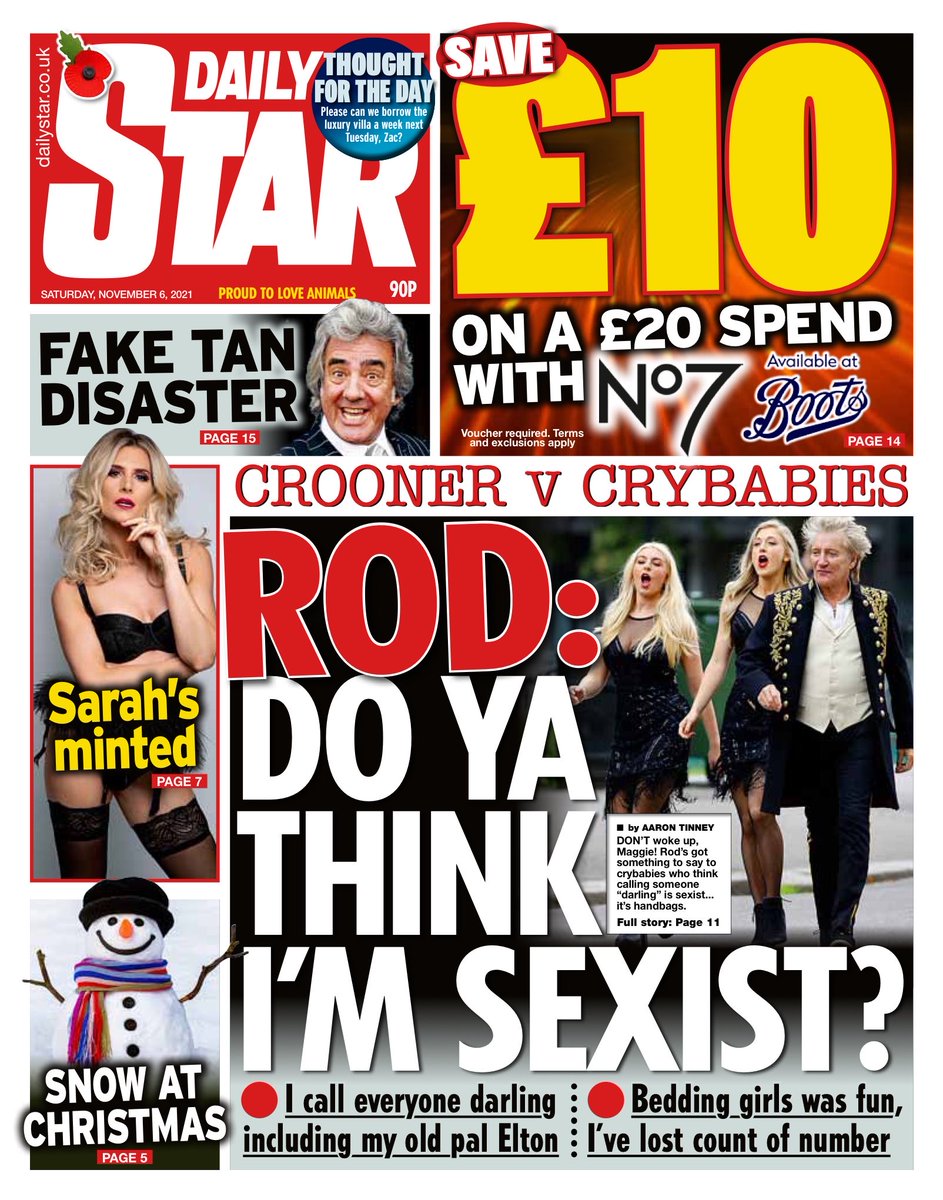 And pop singer Rod Stewart has claimed calling someone “darling” is not sexist in the Daily Star. The paper reports the singer says he calls everyone darling, “including my old pal” Elton John.
