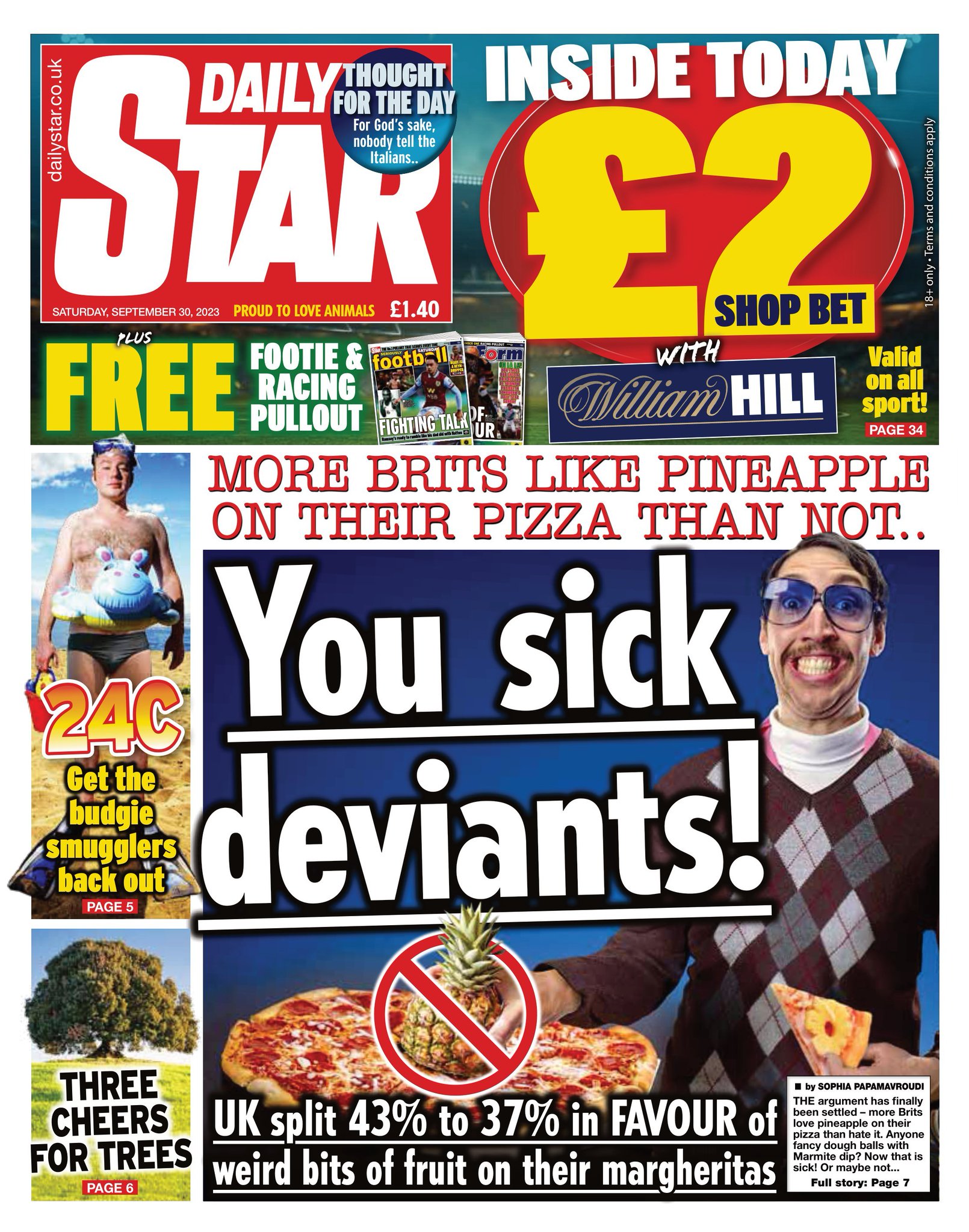 As is its want, the Daily Star goes in a different direction to the rest of the newspapers. Its front page is dominated by the news that polling has revealed that Brits like pineapple on their pizza after all.