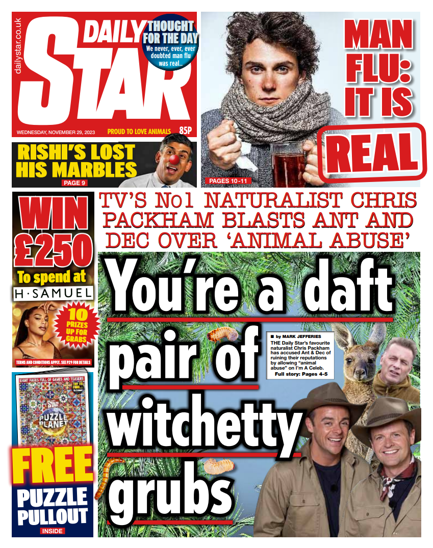 And the Daily Star tells readers to have their thermals at the ready as temperatures could plunge to -6C later this month.