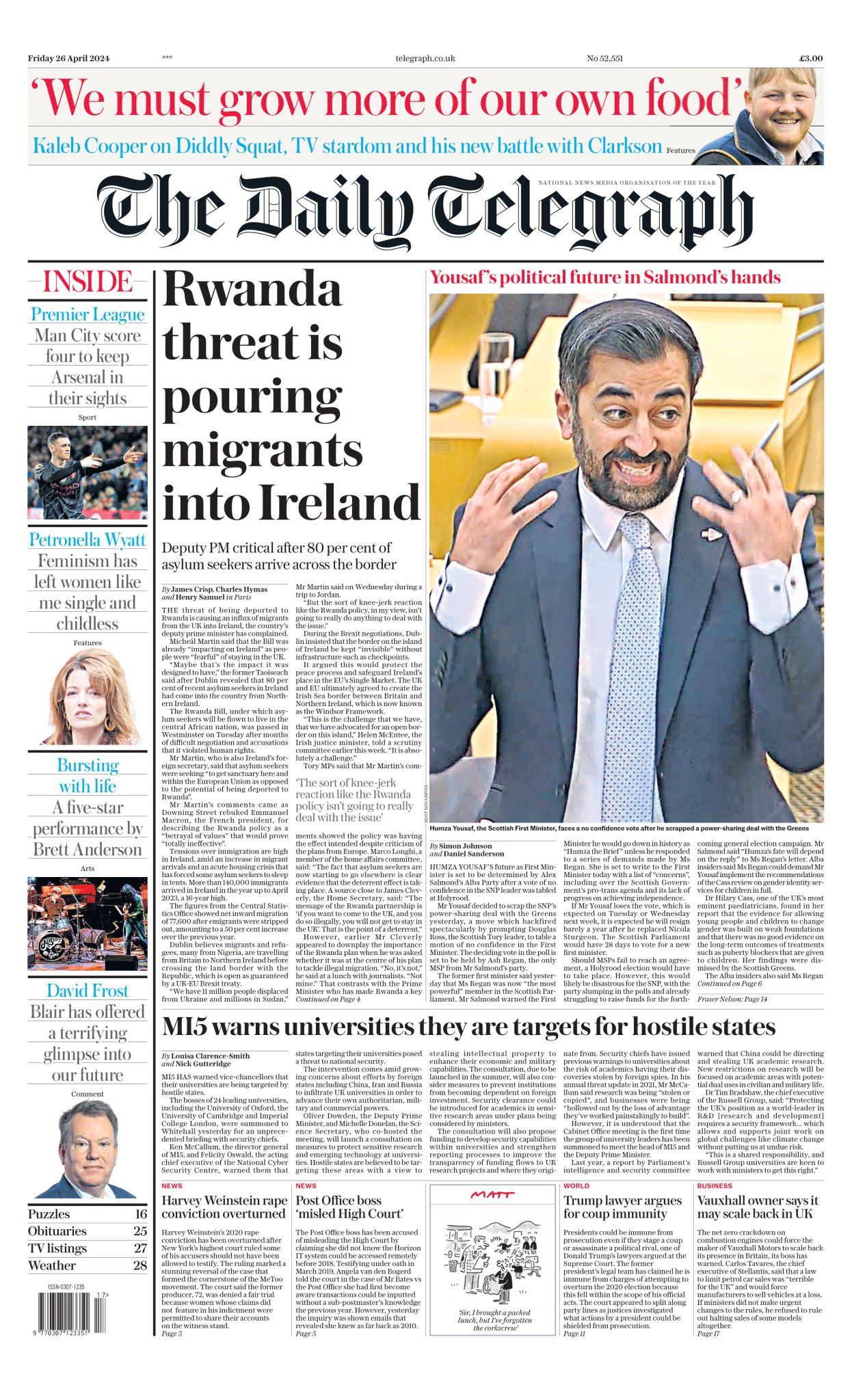 “Vaccine hopes rise”, according to the Daily Telegraph, as scientists hail a breakthrough in the bid to beat Covid-19. Phase one human trials of the Oxford vaccine have shown it generates an immune response against the virus, the paper says. But a source has cautioned that while the results are promising there is not yet evidence of long-lasting immunity. Another story on their front page says Boris Johnson will join the governor of the Bank of England in calling for commuters to return to work to help the economy recover.