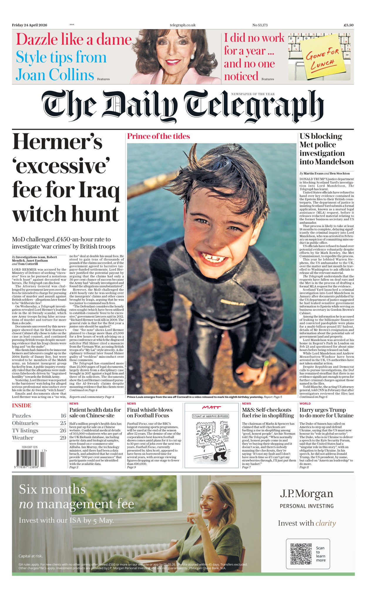 Daily Telegraph Front Page 24th of April 2026