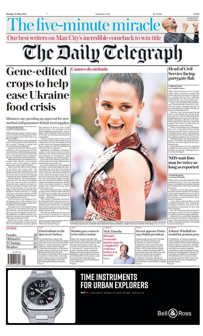 The government will this week introduce a bill that will allow farmers to boost the production of gene-edited crops, reports the Telegraph. The paper says the changes have been planned for a long time but have been accelerated to help guarantee Britain’s food supply following the war in Ukraine.