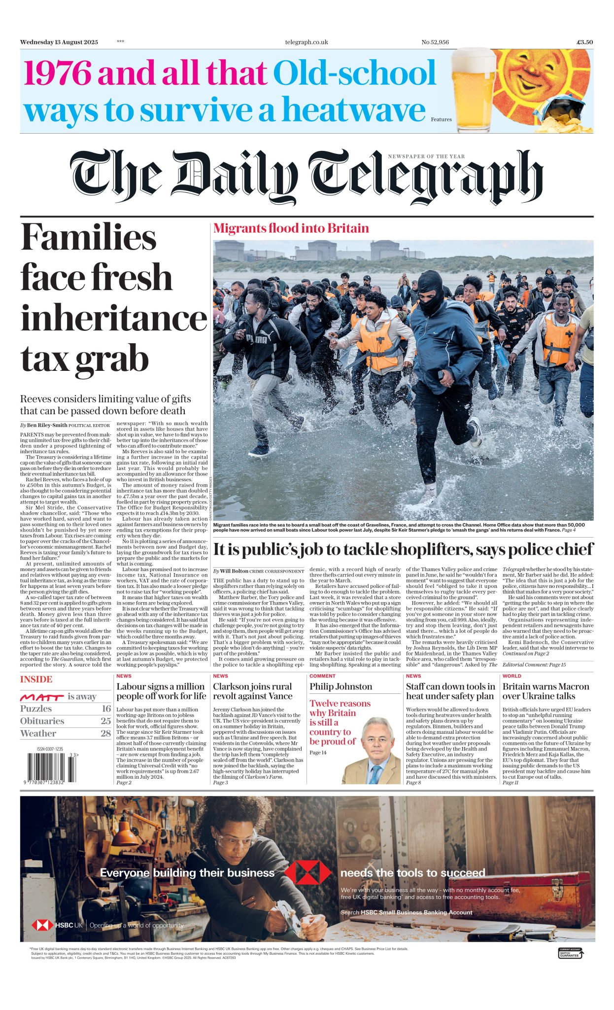 The Daily Telegraph also carries reports of a new battle Ms Truss faces with Tory MPs over reducing benefits. Downing Street is considering not increasing universal credit payments in line with inflation and instead raising it by a lower figure, such as the increase in average earnings, to encourage those on benefits into work, the papers reports.