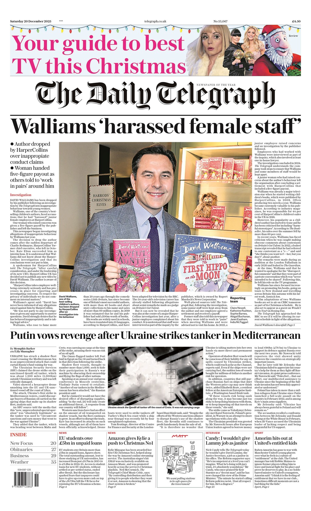 Daily Telegraph Front Page 20th of December 2025