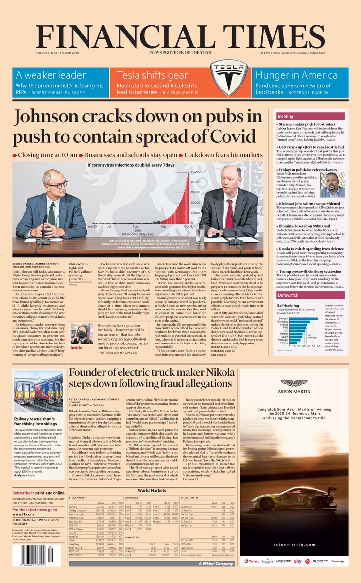 Boris Johnson is under pressure from Chancellor Rishi Sunak and some Tory MPs to hold back from draconian new lockdown measures to prevent too much damage to the economy, the Financial Times writes.