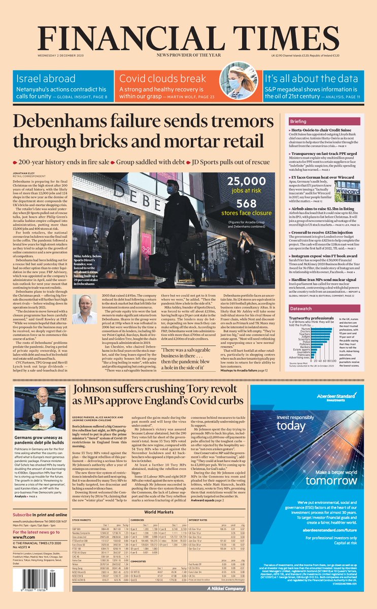 The Financial Times leads on the prime minister’s new coronavirus restrictions and the economic implications of workers being told to work from home again.