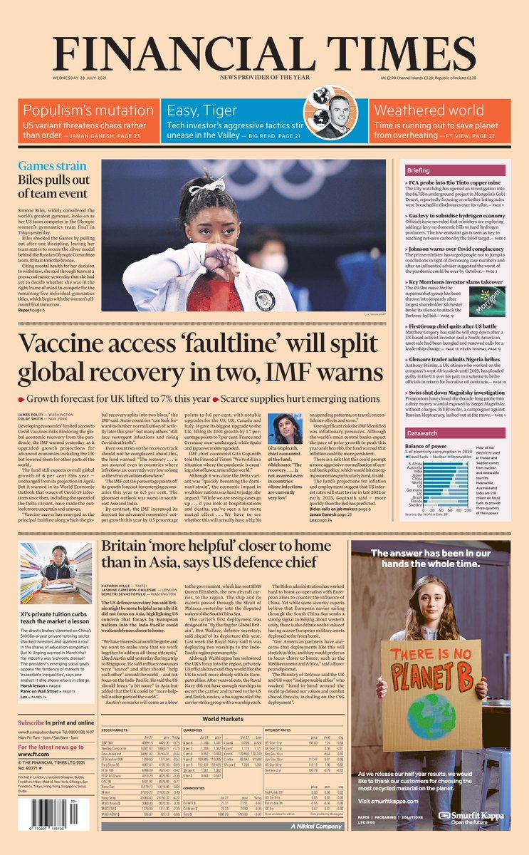 The US election results are “on a knife edge”, according to the Financial Times, which features pictures of President Donald Trump and his Democratic rival Joe Biden as they made speeches in the early hours of Wednesday morning. It says Mr Biden’s performance in Wisconsin, Michigan and Nevada are “raising his White House hopes” but Mr Trump has “vowed to fight on” after a “strong showing”.