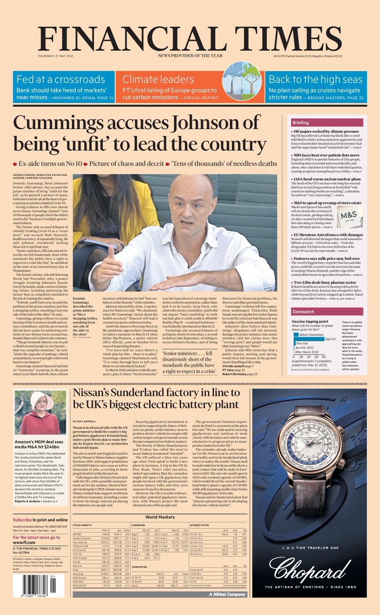 Mr Johnson’s supporters believe the allegations “will not seriously damage the prime minister” in any case, reports the Financial Times. The claims amounted to “revenge porn”, according to one unnamed minister. The paper also remarks that the evidence “left few reputations undamaged”, with Chancellor Rishi Sunak “among the few senior figures to avoid his criticism”.
