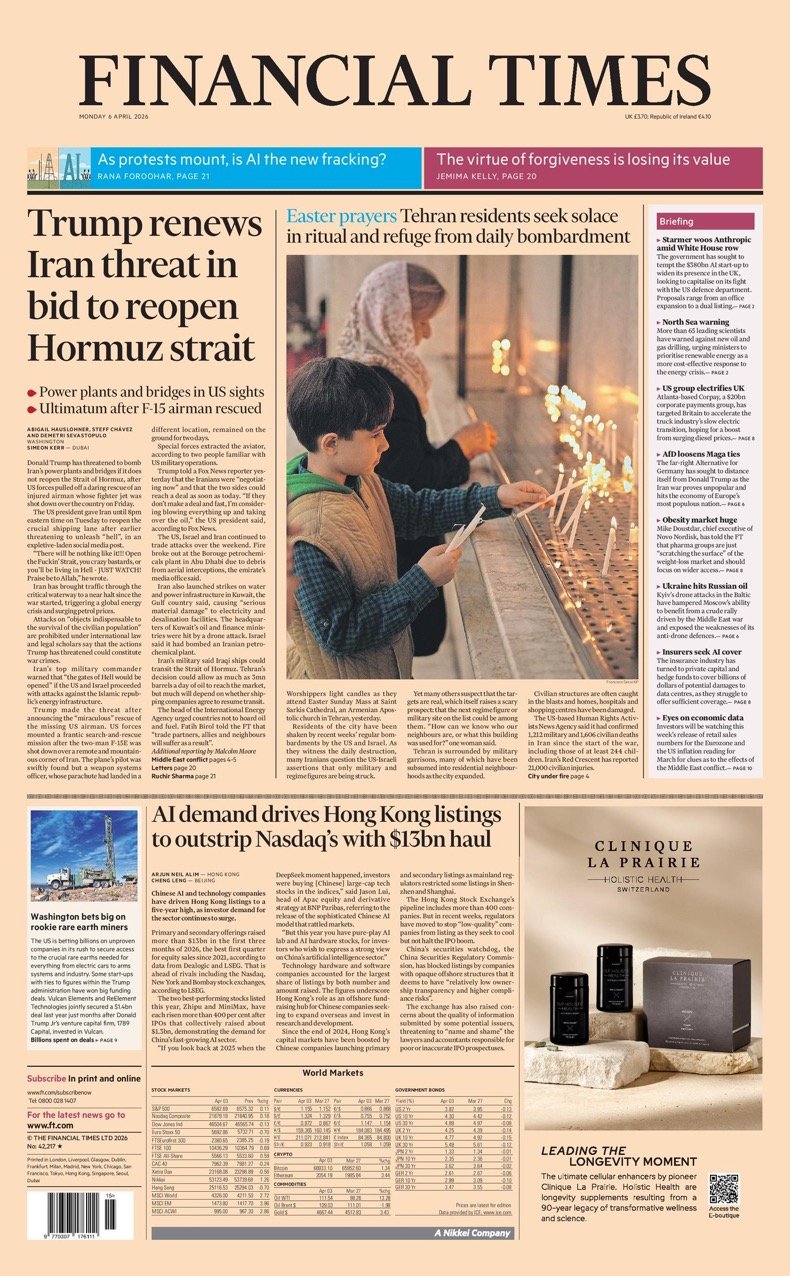Financial Times Front Page 6th of April 2026