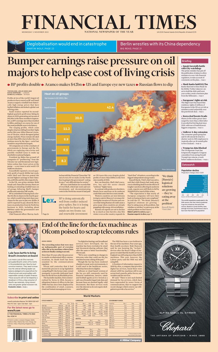Meanwhile, the Financial Times reports that some of the world’s largest energy companies have posted record profits amid soaring prices. Saudi Aramco raked in over $42bn in the last quarter, as US President Joe Biden accused some firms of “profiteering” at consumers’ expense.