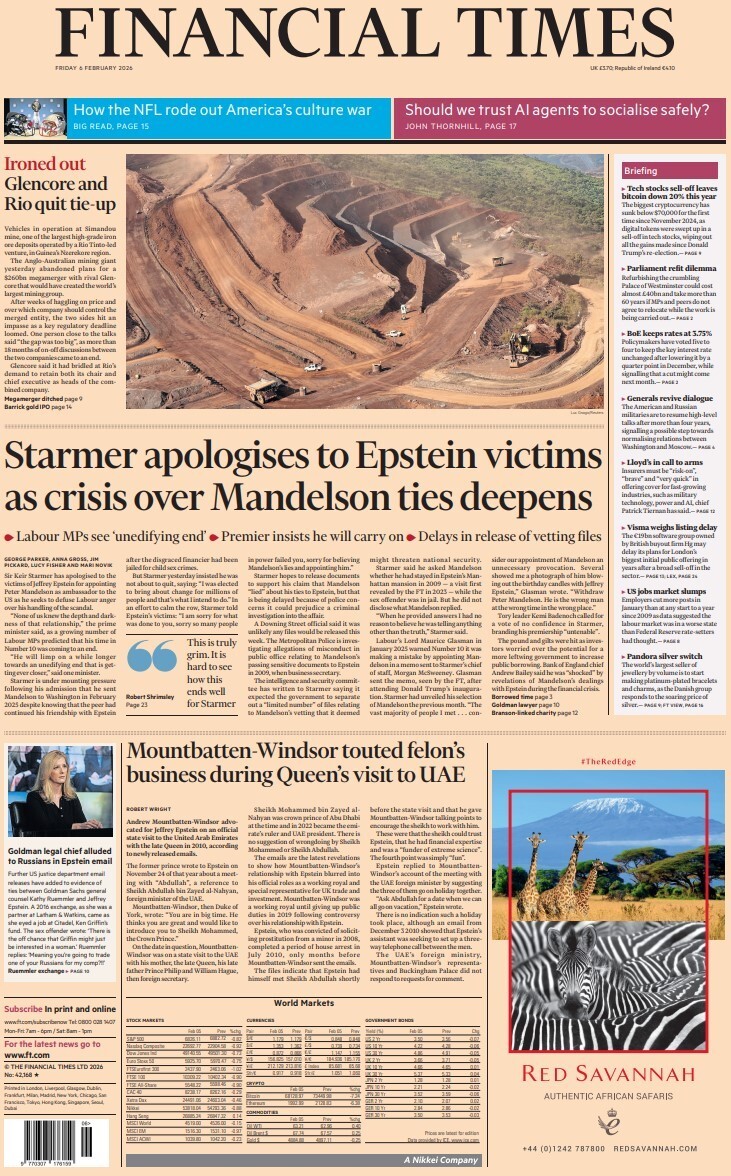 Keir Starmer apologised to victims of Jeffrey Epstein amid scrutiny of links to Peter Mandelson. He said Mandelson would continue advising him, despite concern from some Labour MPs. Questions grew over security vetting and access, with calls for transparency as officials delayed releasing related files.