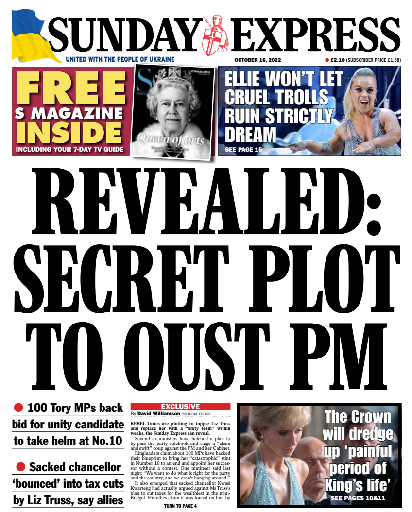 The Sunday Express reports that rebel Tories are planning to replace Liz Truss within weeks with a “unity team”.