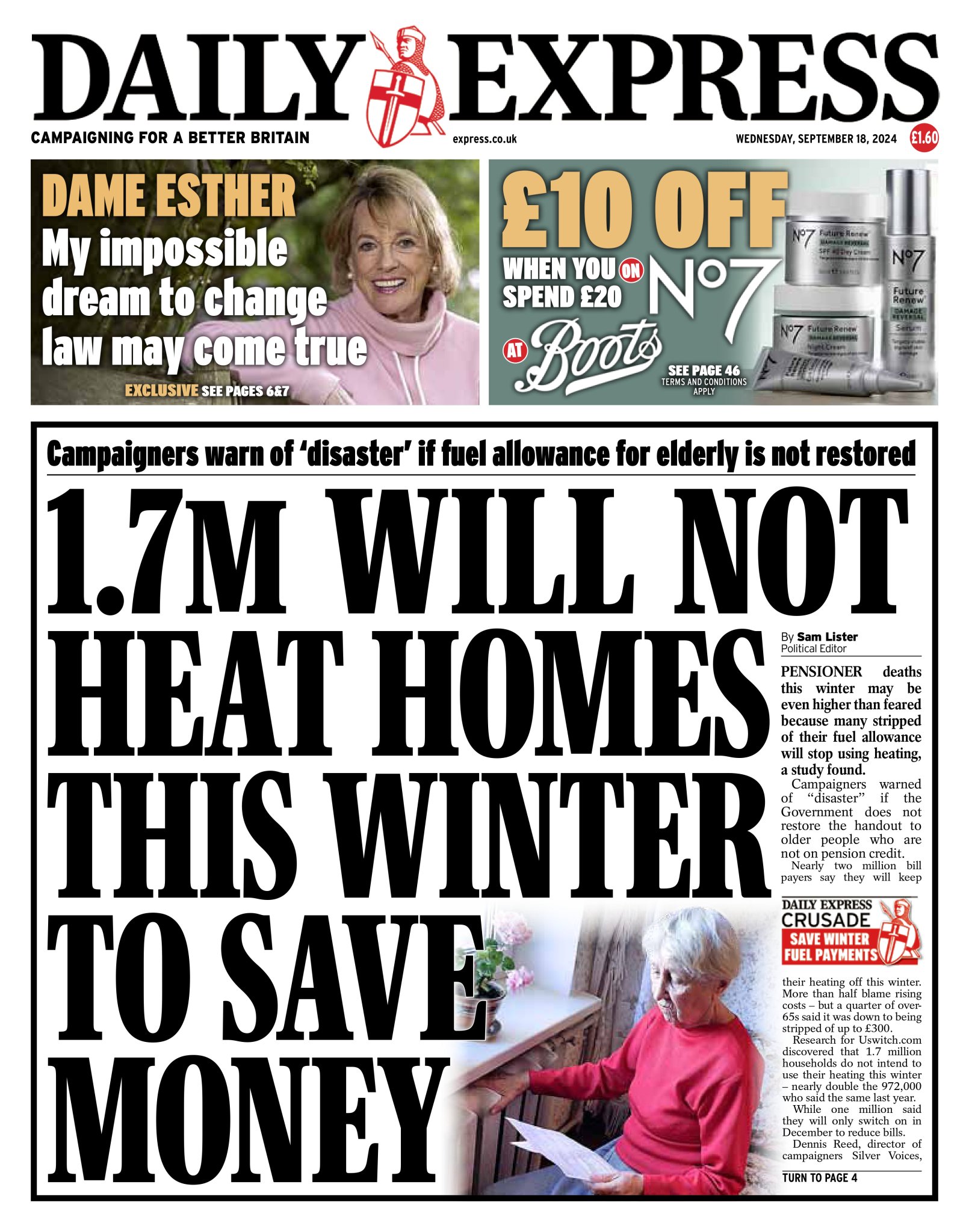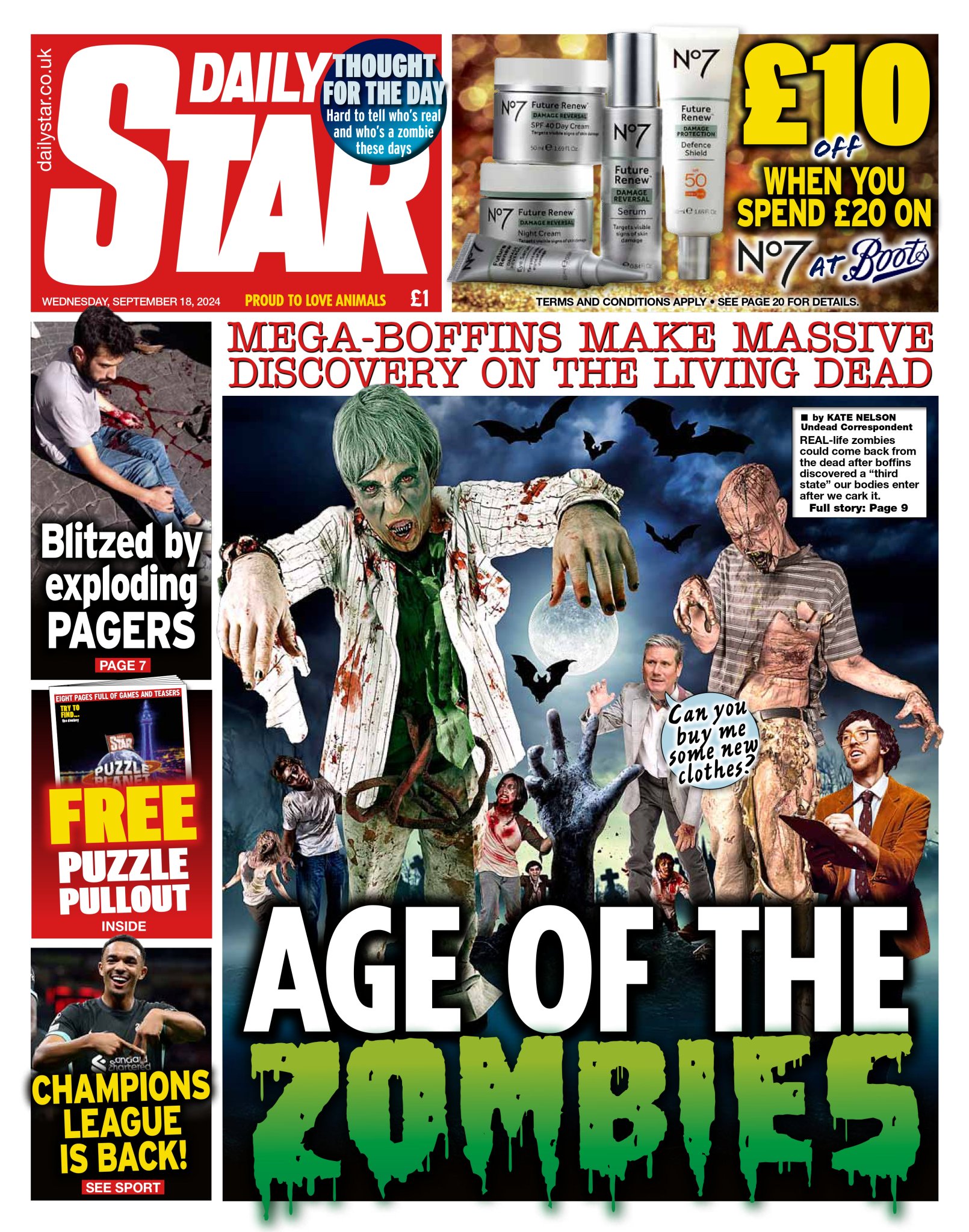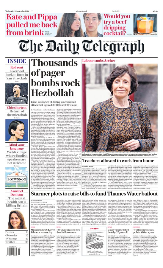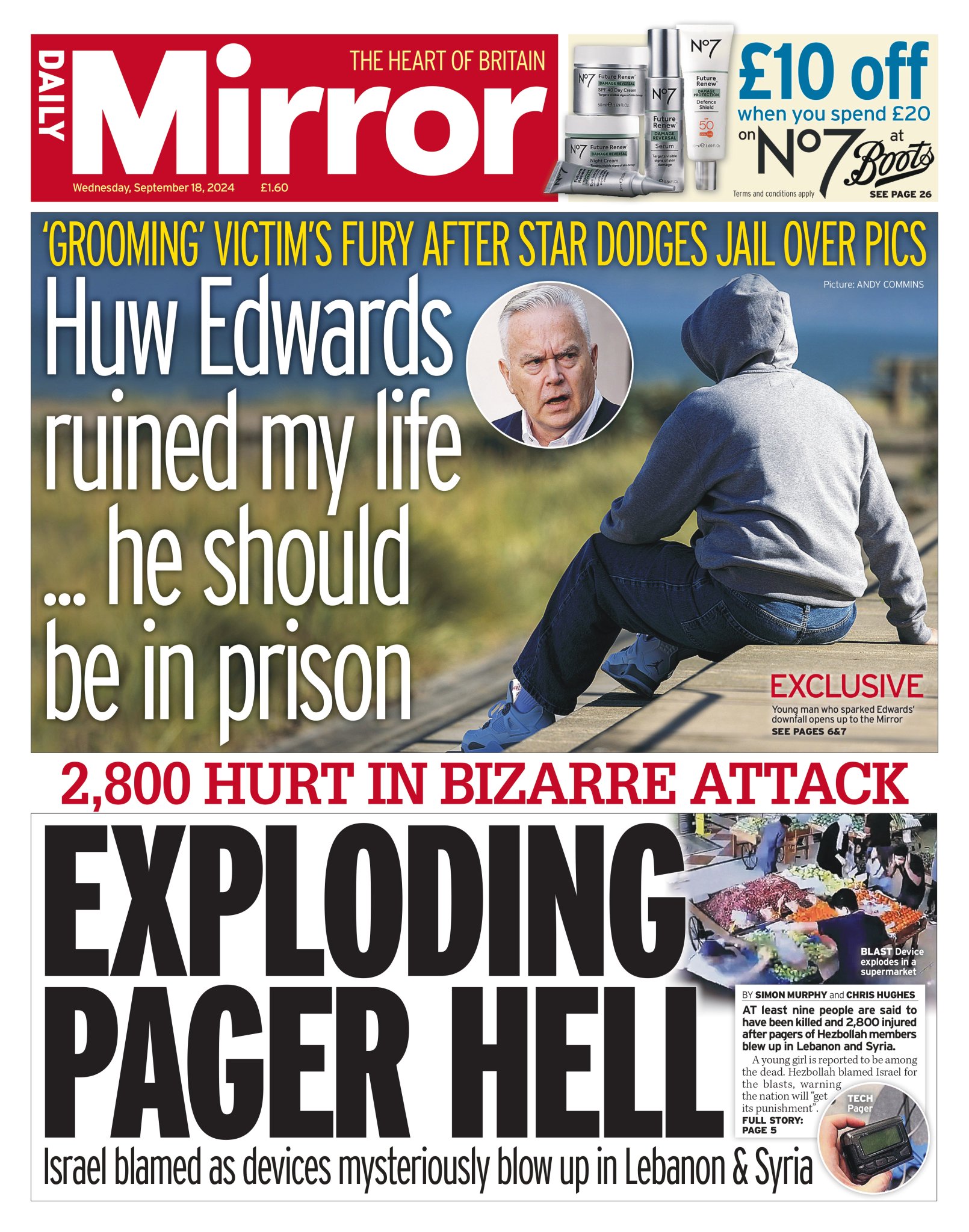 Daily Mirror Front Page 18th of September 2024