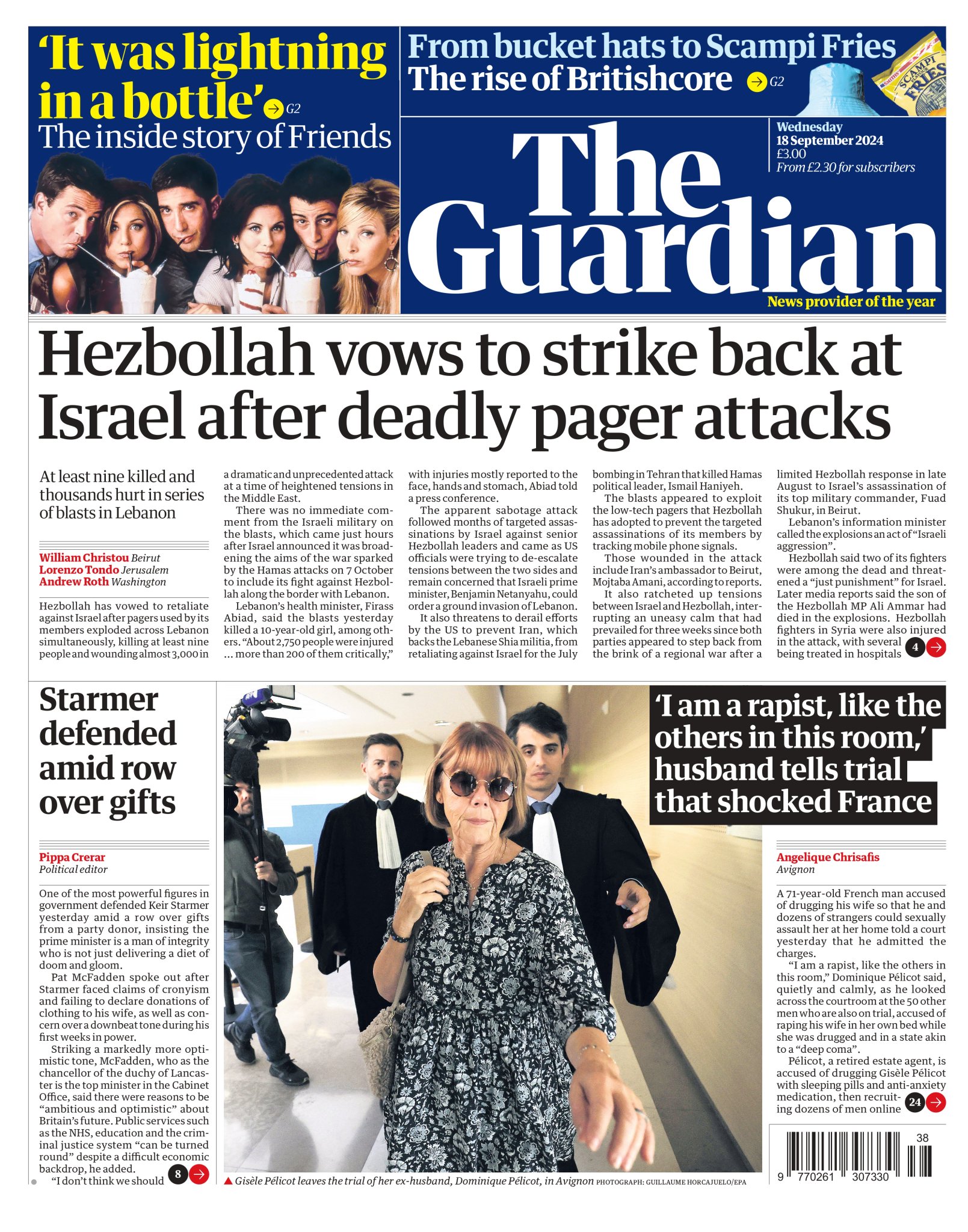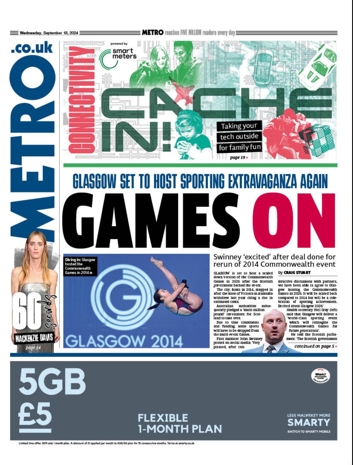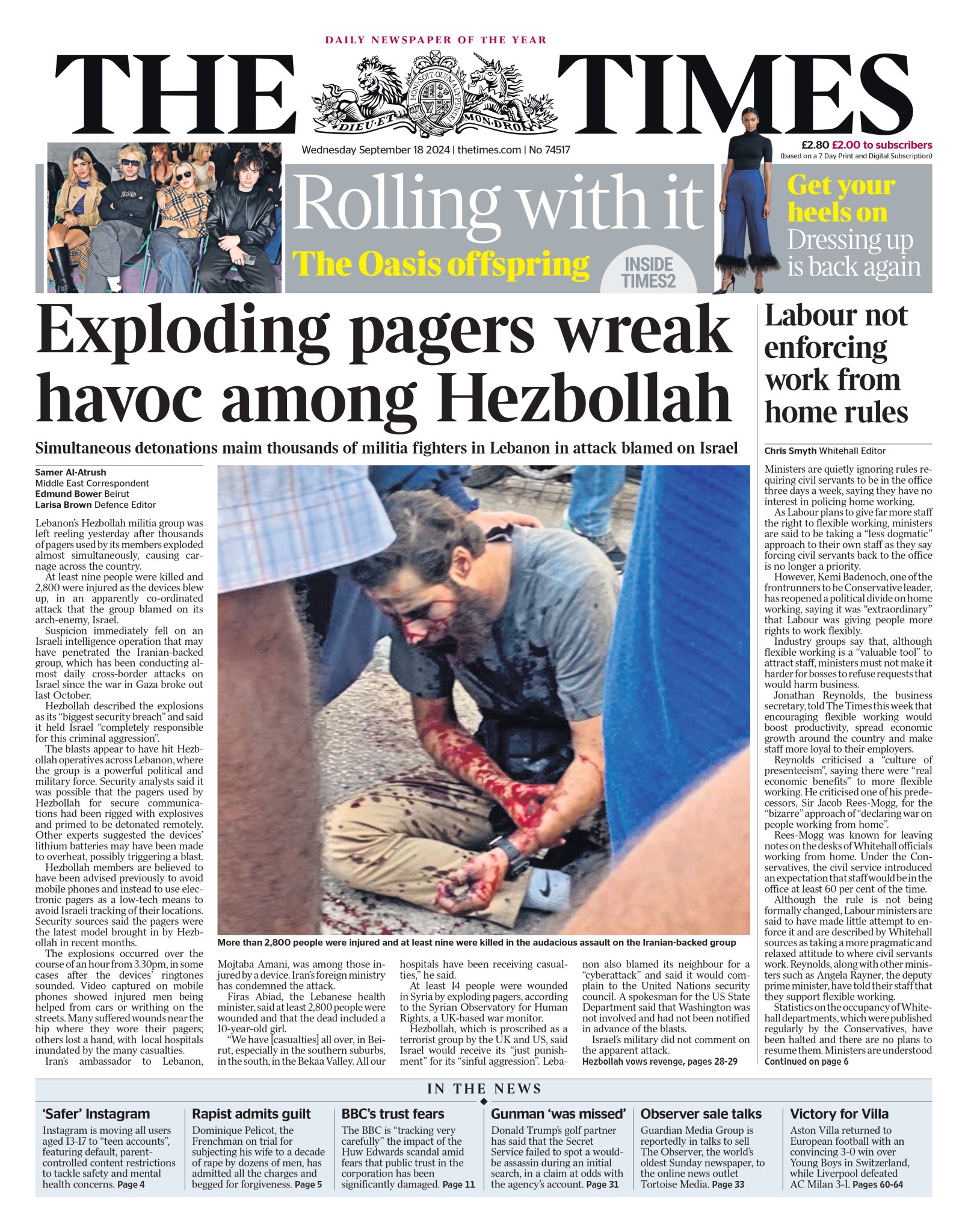 Daily Mirror Front Page 18th of September 2024