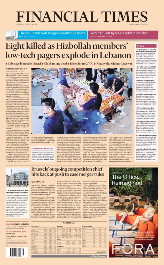 Eight people were killed and 2,700 injured in Lebanon when low-tech pagers exploded, with Hizbollah blaming sabotage by Israel.