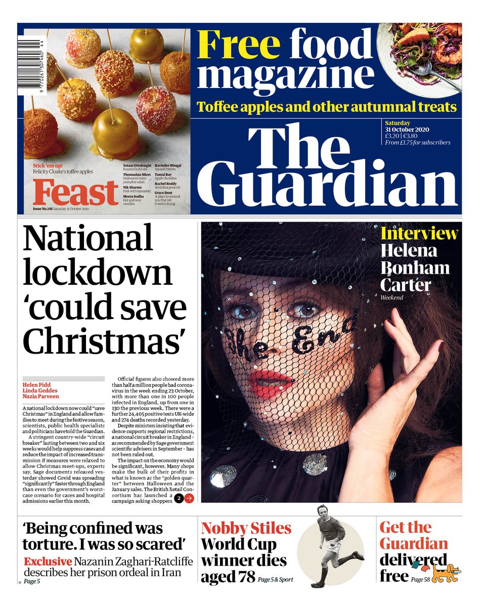 A national lockdown “could save Christmas” in England and allow families to meet during the festive break, the Guardian says, citing scientists, politicians and public health specialists. Experts, the paper says, believe that nationwide measures lasting two to six weeks would help suppress cases. Official figures have shown that more than half a million people had coronavirus in the week ending 23 October, with more than one in 10 infected in England.