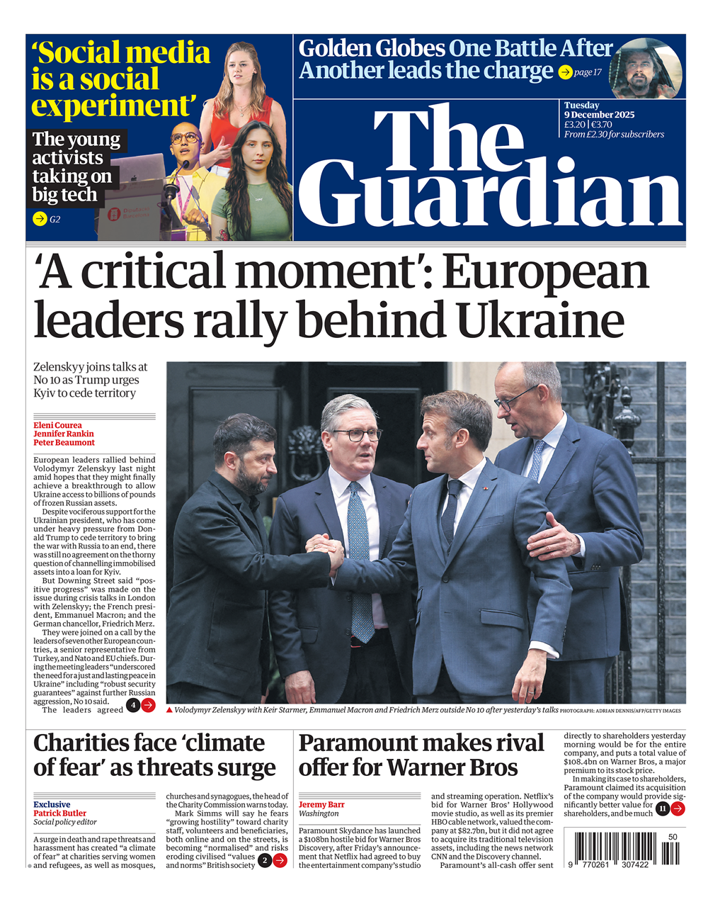 Guardian Front Page 9th of December 2025