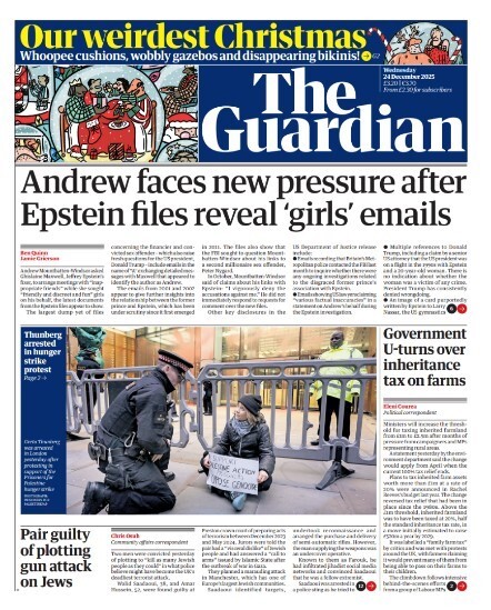 Guardian Front Page 24th of December 2025