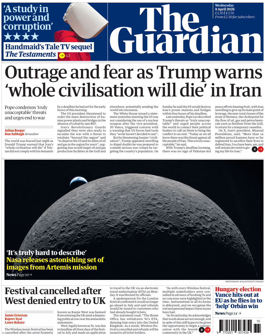Trump threatened devastating consequences for Iran unless it accepts his demands by an imminent deadline, triggering international alarm. The Pope called the rhetoric unacceptable and urged de-escalation, while Washington framed the warning as deterrence. Mediation efforts have stalled.