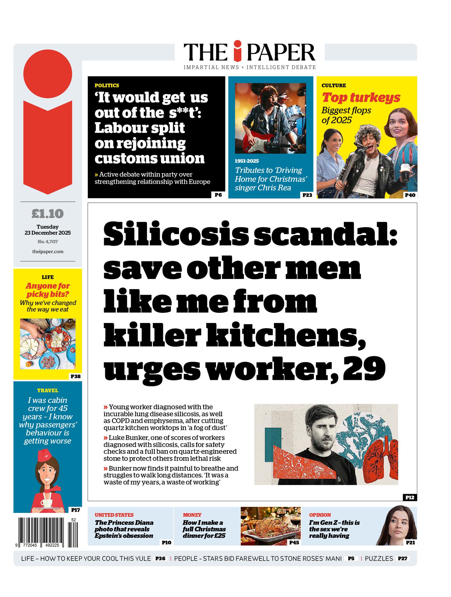 Luke Bunker, 29, developed silicosis, COPD and emphysema after cutting quartz‑engineered kitchen worktops. He calls for urgent safety checks and a ban on the material to protect workers from silica dust, amid rising cases reported in the trade.
