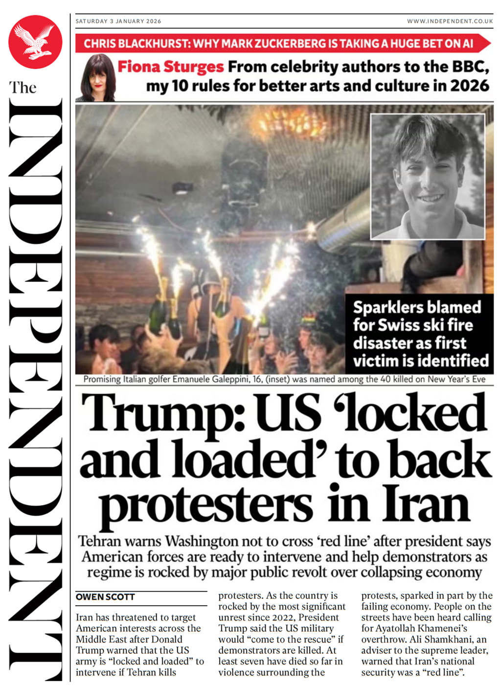 Donald Trump said the US is ready to act in support of demonstrators in Iran, pledging assistance if they face lethal crackdowns. Tehran warned Washington not to cross a “red line”. The unrest stems from a worsening economic crisis, with deaths reported.