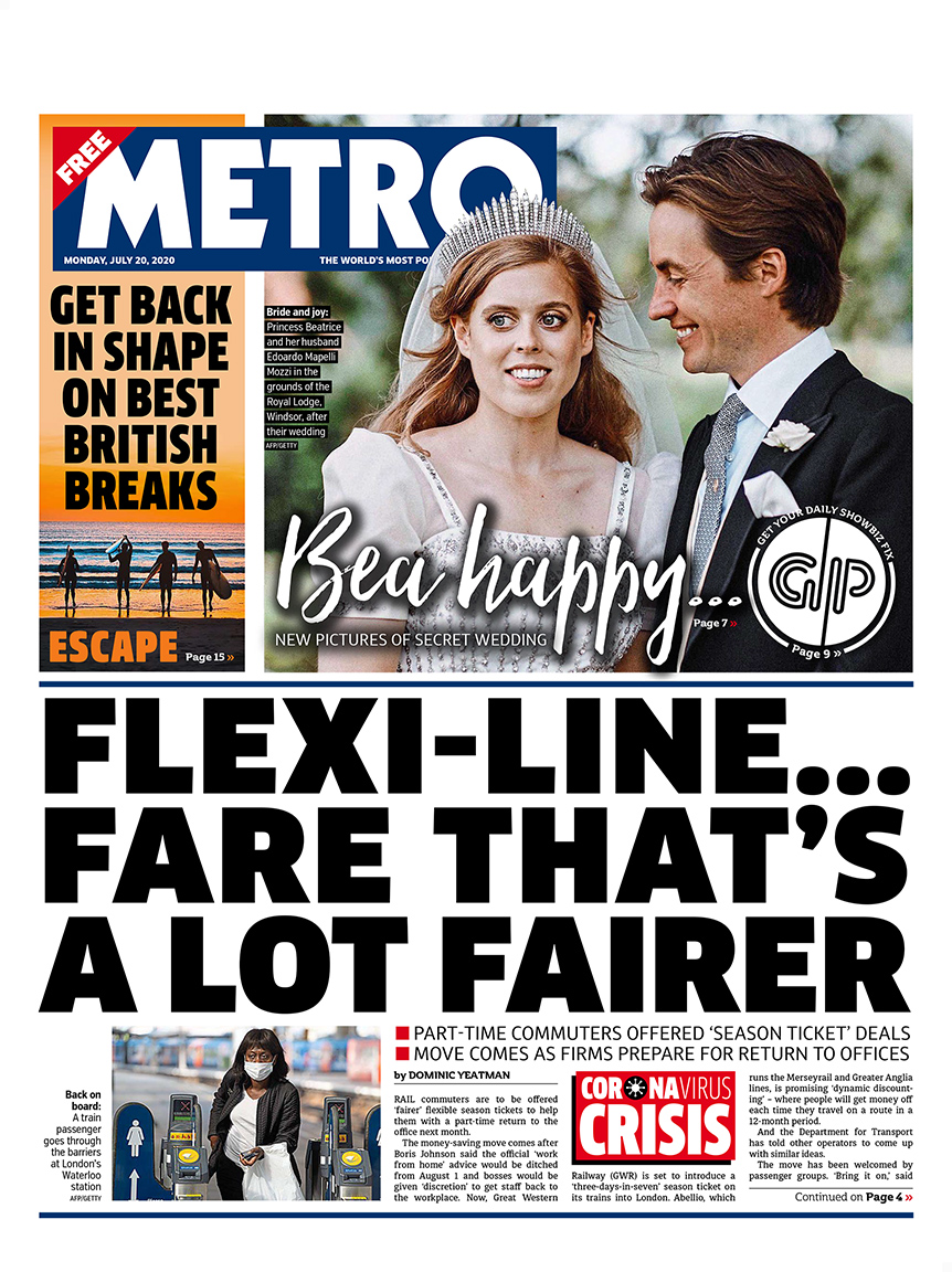 Striking a more optimistic tone, the Metro reports that part-time rail commuters will be offered flexible season tickets, as firms prepare for workers to return to offices from 1 August. Great Western Railway is set to introduce a “three-days-in-seven” season ticket on trains into the capital, the paper says, with “dynamic discounting” promised on Merseyrail and Greater Anglia services. The Department of Transport has reportedly encouraged other operators to come up with similar offers.