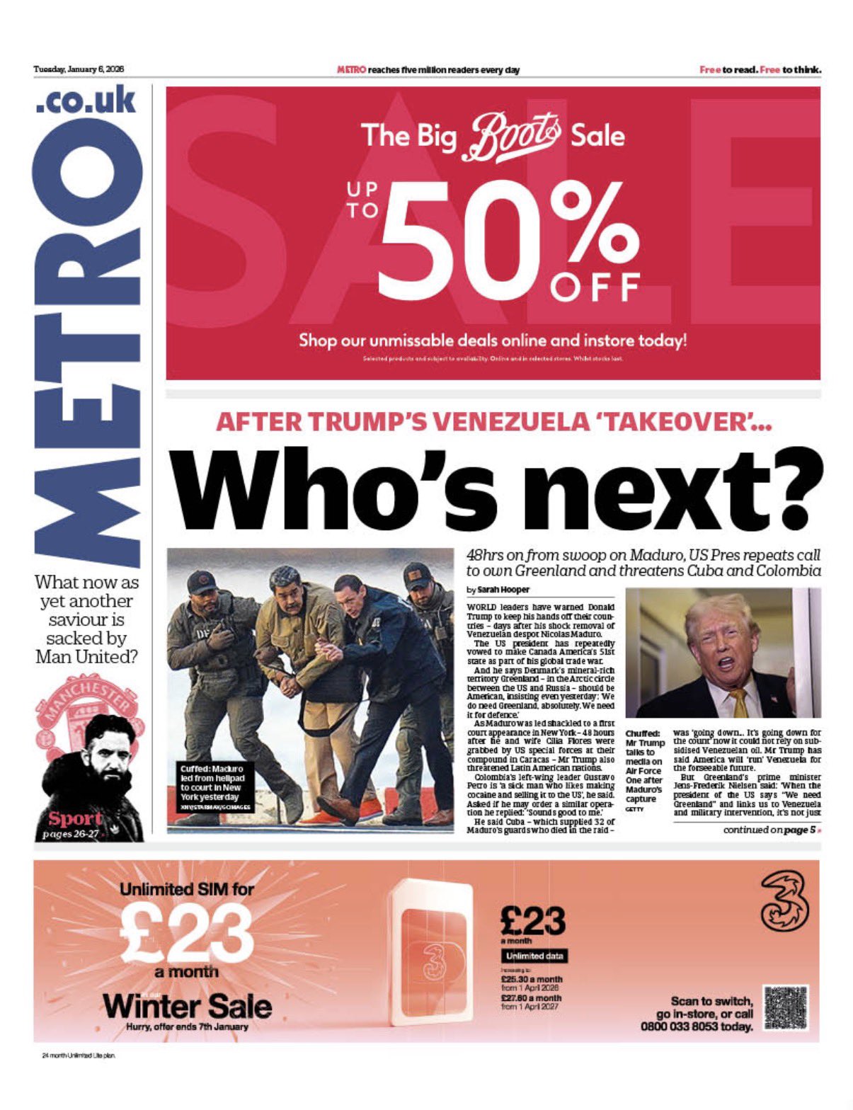 Metro Front Page 6th of January 2026