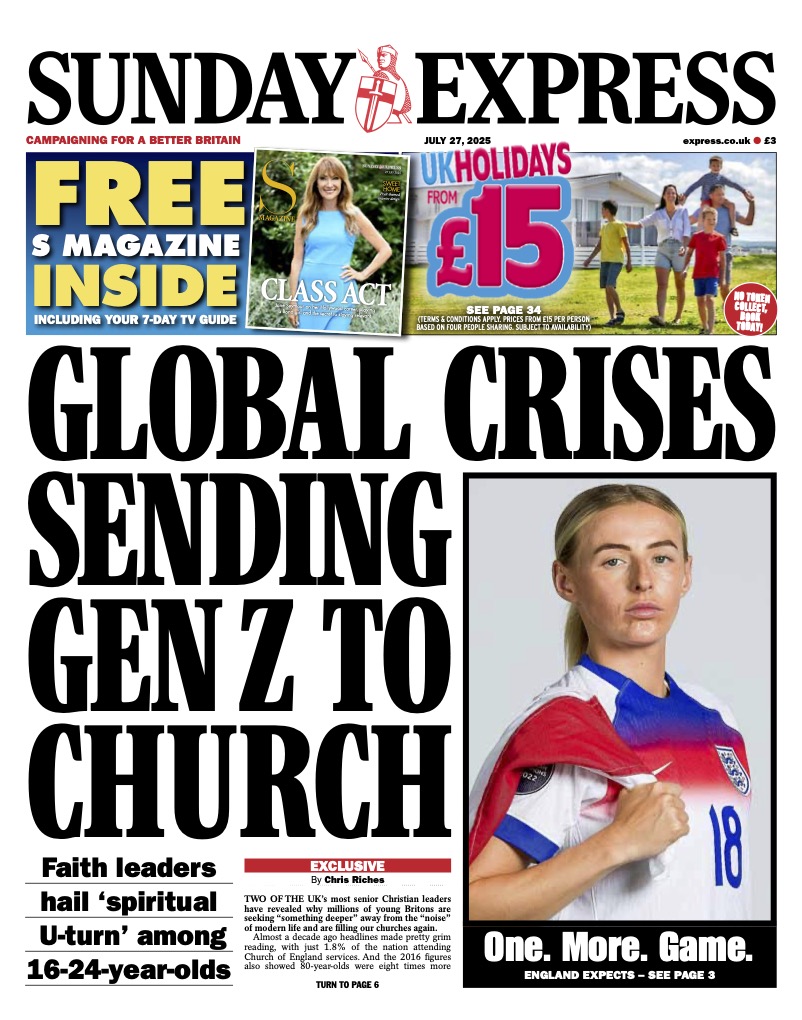 The Sunday Express quotes Attorney General Suella Braverman saying the British people, rather than European judges, must “decide who can and cannot stay in our country”. The comment is in apparent reference to the European Court of Human Rights (ECHR) essentially grounding the government’s first asylum removal flight to Rwanda.