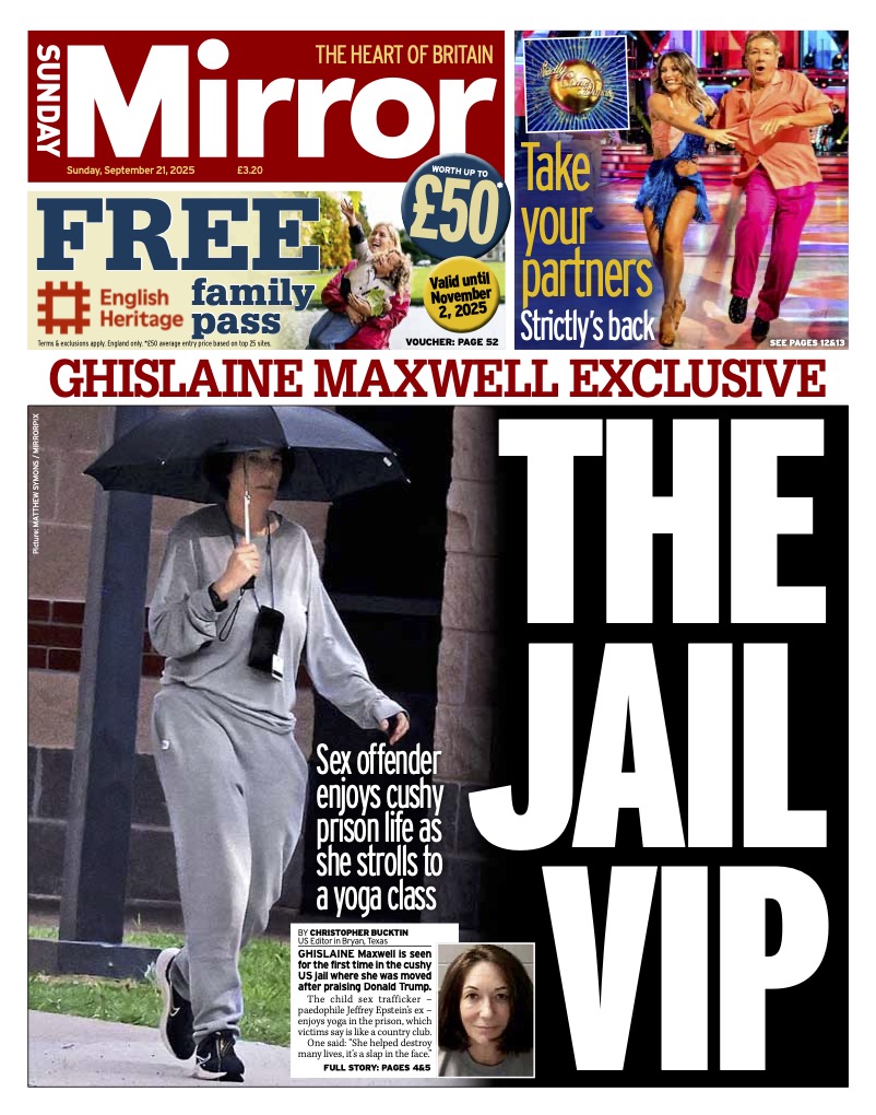 Sunday Mirror Front Page 26th of October 2025
