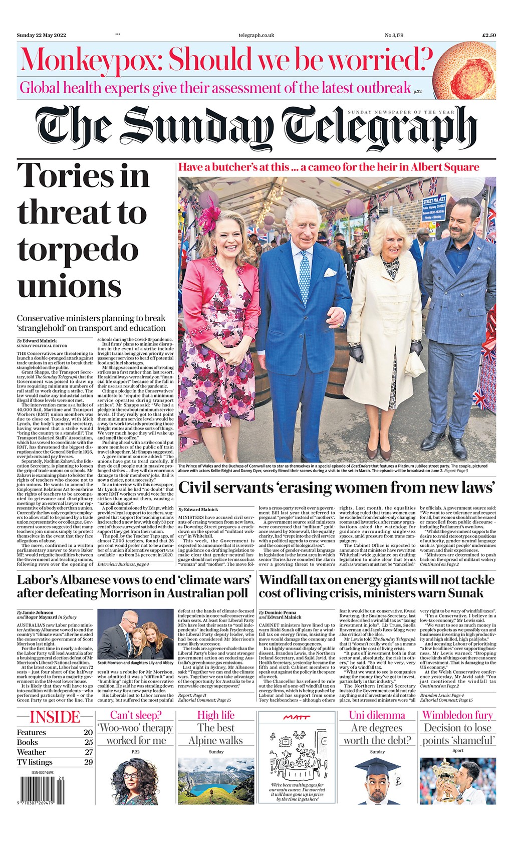 A photograph of Carrie Johnson and a friend dominates the front of the Sunday Telegraph, as the paper alleges that the prime minister’s wife broke Covid social distancing rules days after the public was told it was “critical” to follow the guidance. The paper says the image was taken in September 2020 during a friend’s engagement party at a private members’ club in the West End. A spokesman for Mrs Johnson told the paper that she “regrets the momentary lapse in judgment in briefly hugging her friend for a photograph”.