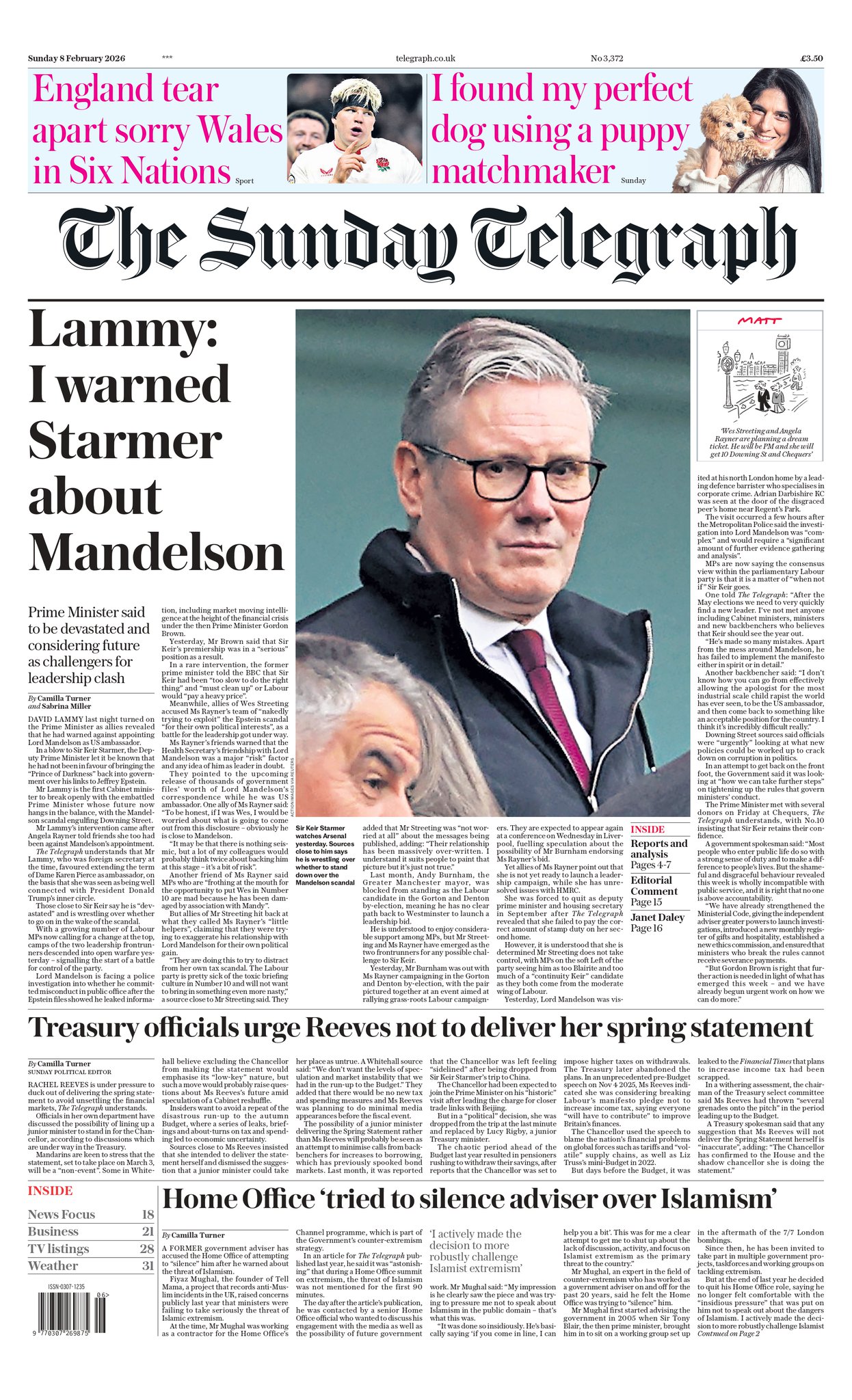 David Lammy says he warned the PM about appointing Peter Mandelson before a scandal erupted. Allies say the PM is devastated and weighing his future, as potential rivals, including Wes Streeting and Angela Rayner, test support. Party MPs fret over fallout and possible leadership contest.